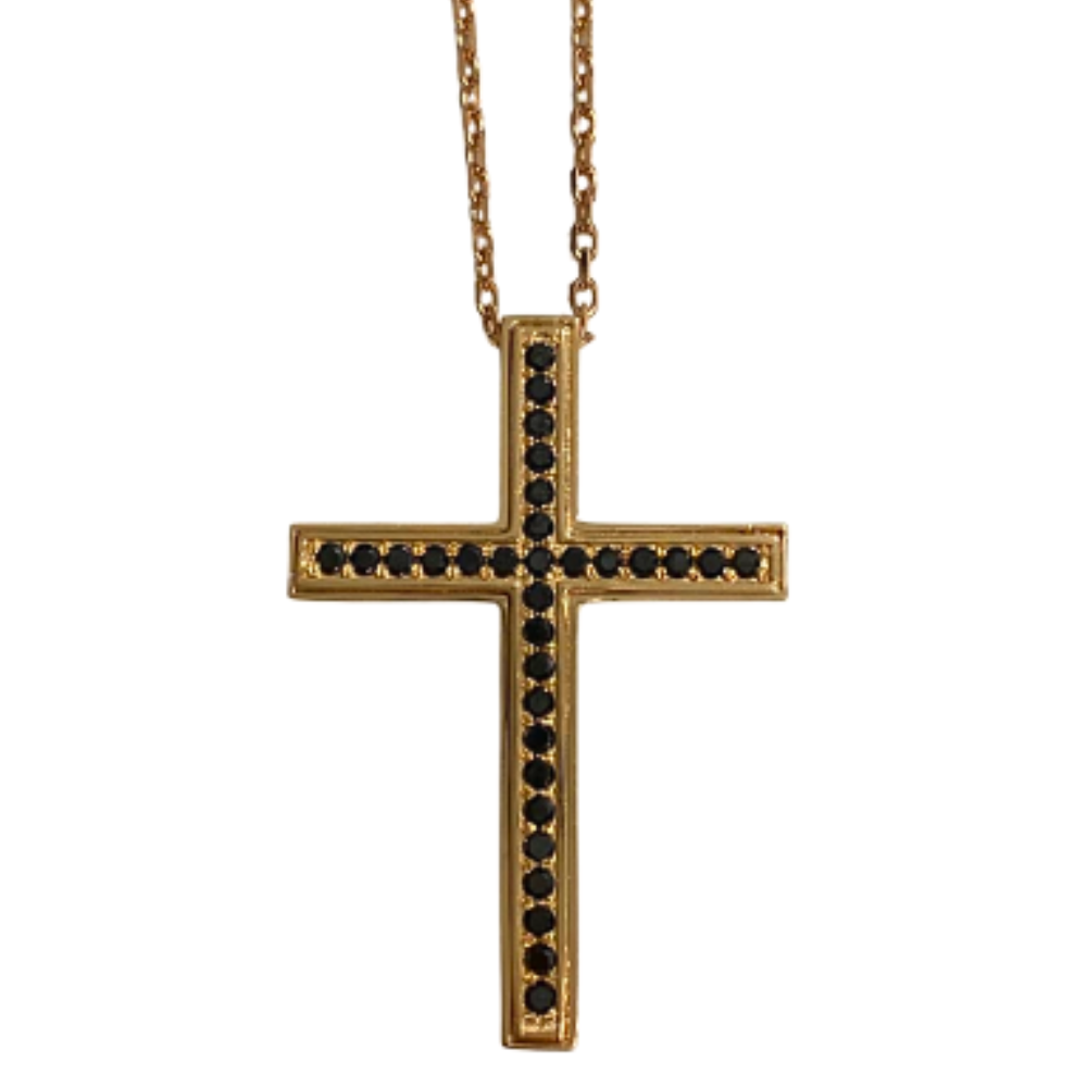 Pandantiv cruciulita din aur rose de 14 K, cu diamante negre de 1.10 ct. Greutatea colierului este de 16.15 grame.