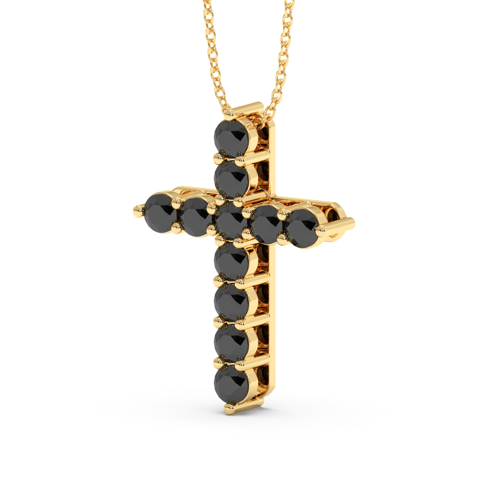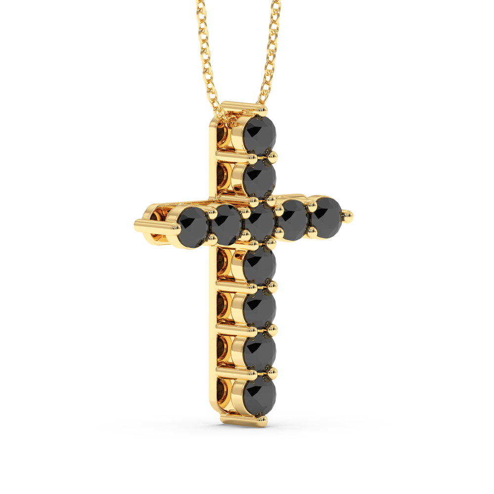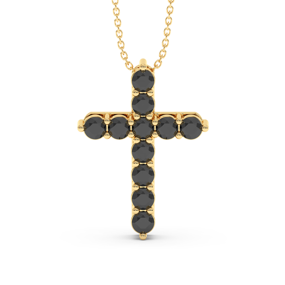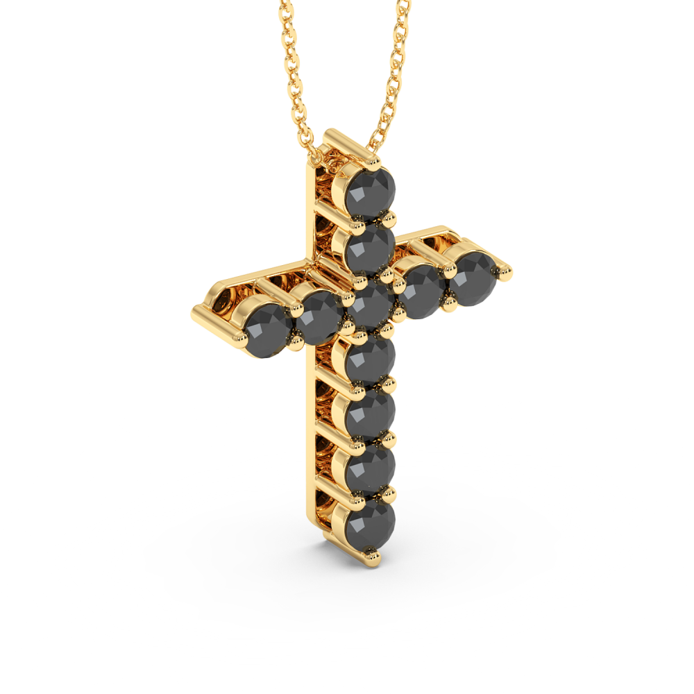Pandantiv cruciulita din aur de 14 K, cu diamante negre de 1.65 ct. Greutatea cruciulitei este de aproximativ 7.00 grame, dimensiunea este de 27mm.