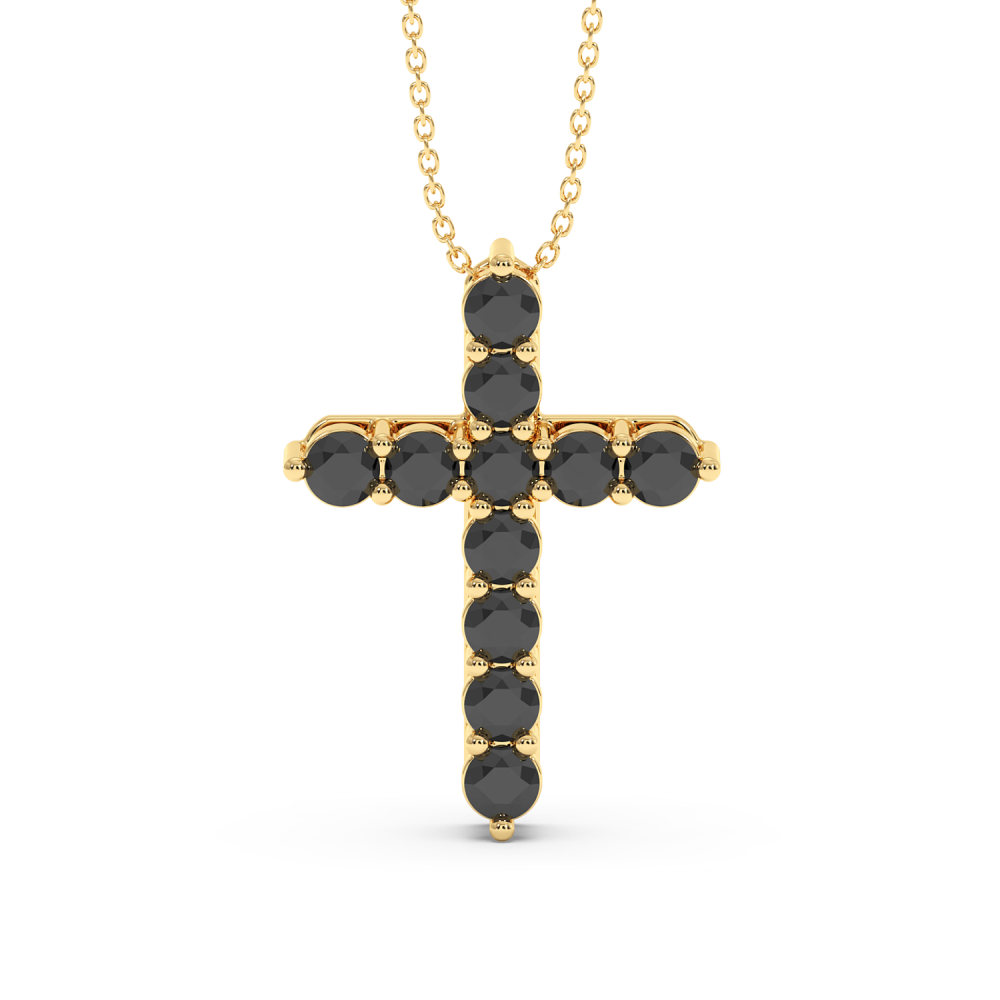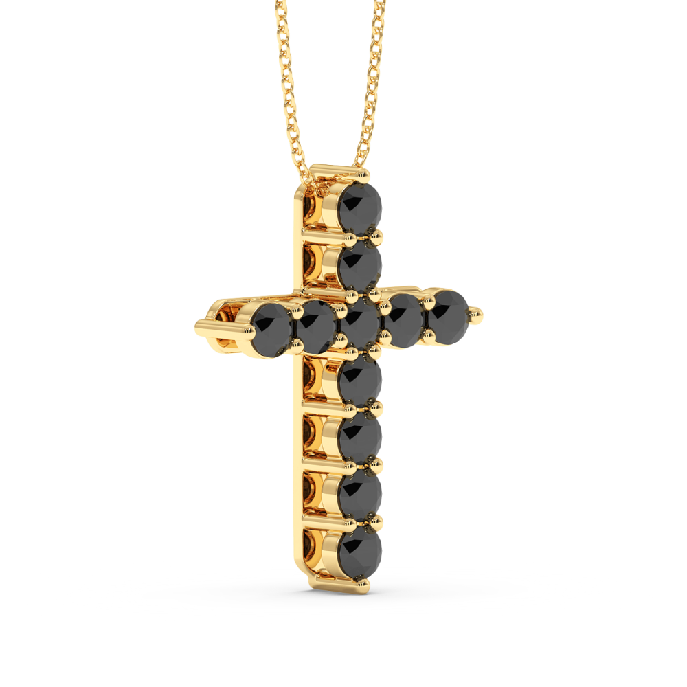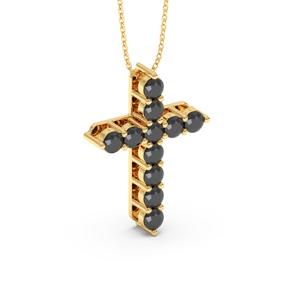 Pandantiv cruciulita din aur de 14 K, cu diamante negre de 2.20 ct. Greutatea cruciulitei este de aproximativ 8.50 grame, dimensiunea este de 29mm.