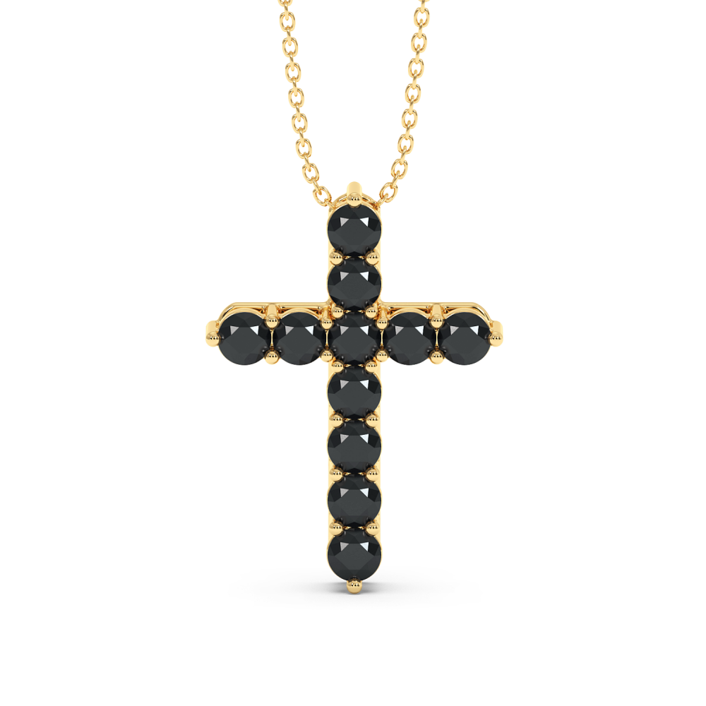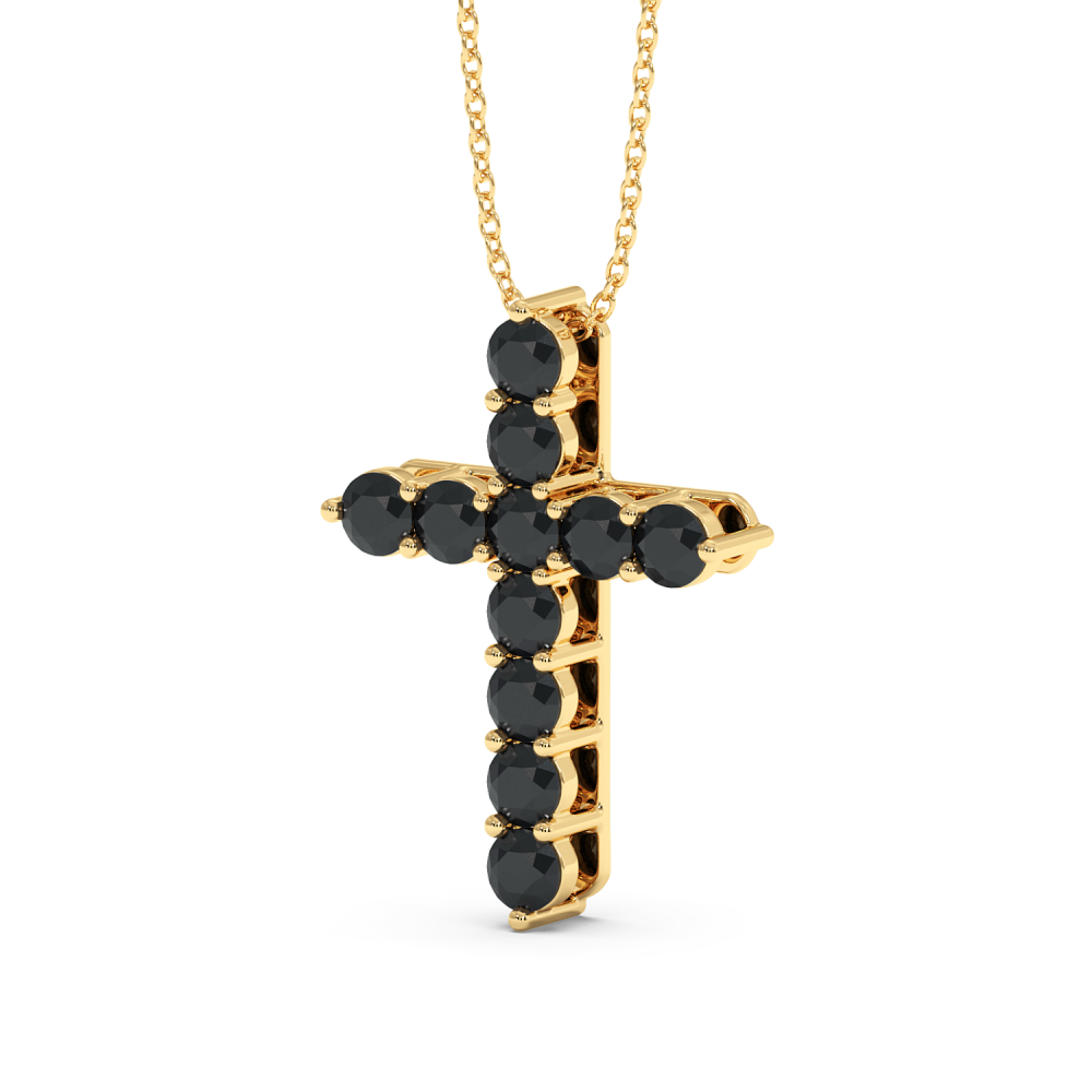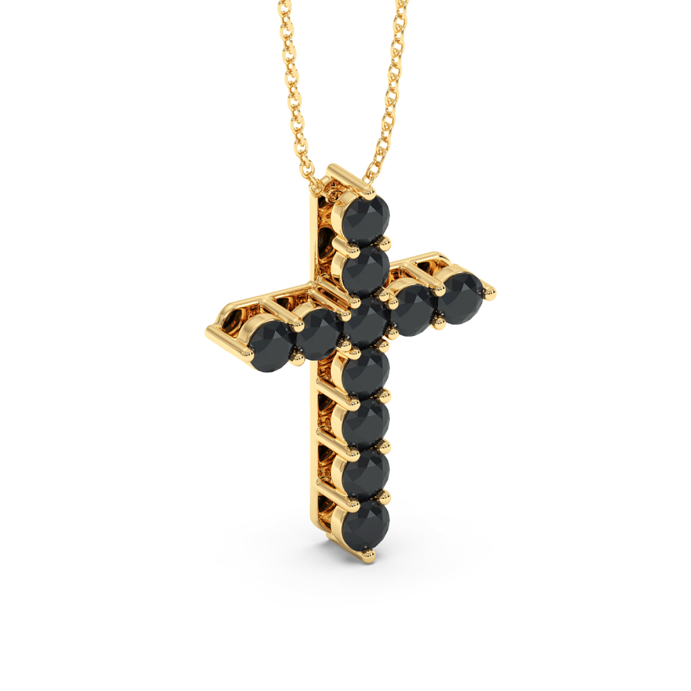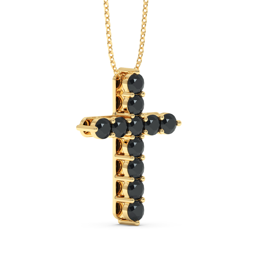 Pandantiv cruciulita din aur alb de 14 K, cu diamante negre de 3.59 ct. Greutatea colierului este de 7.74 grame.