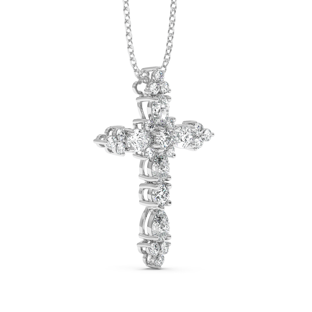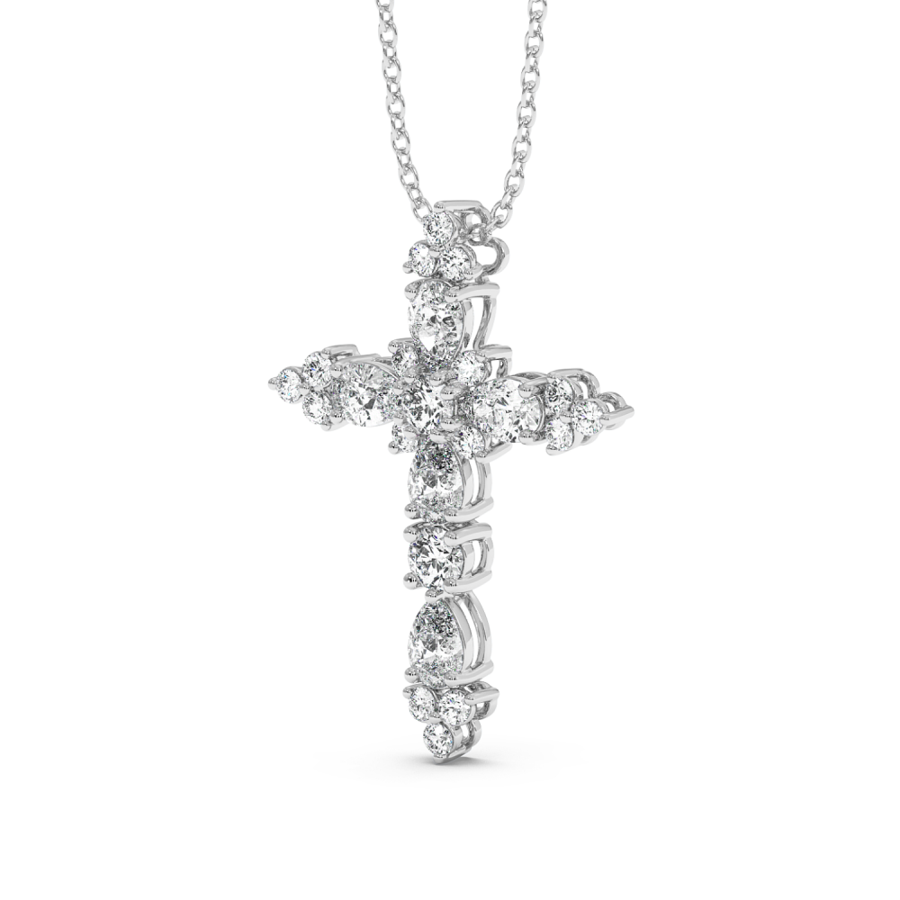 Pandantiv cruciulita din aur de 14 K, cu diamante pear de 0.83 ct si diamante rotunde de 0.22 ct. Greutatea cruciulitei este de aproximativ 3,5 grame. Accesati "SPECIFICATII" pentru mai multe detalii despre acest produs.