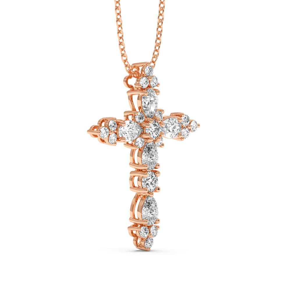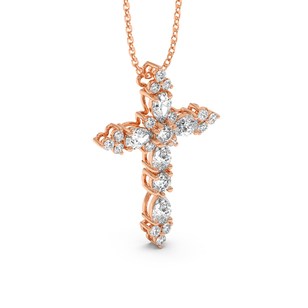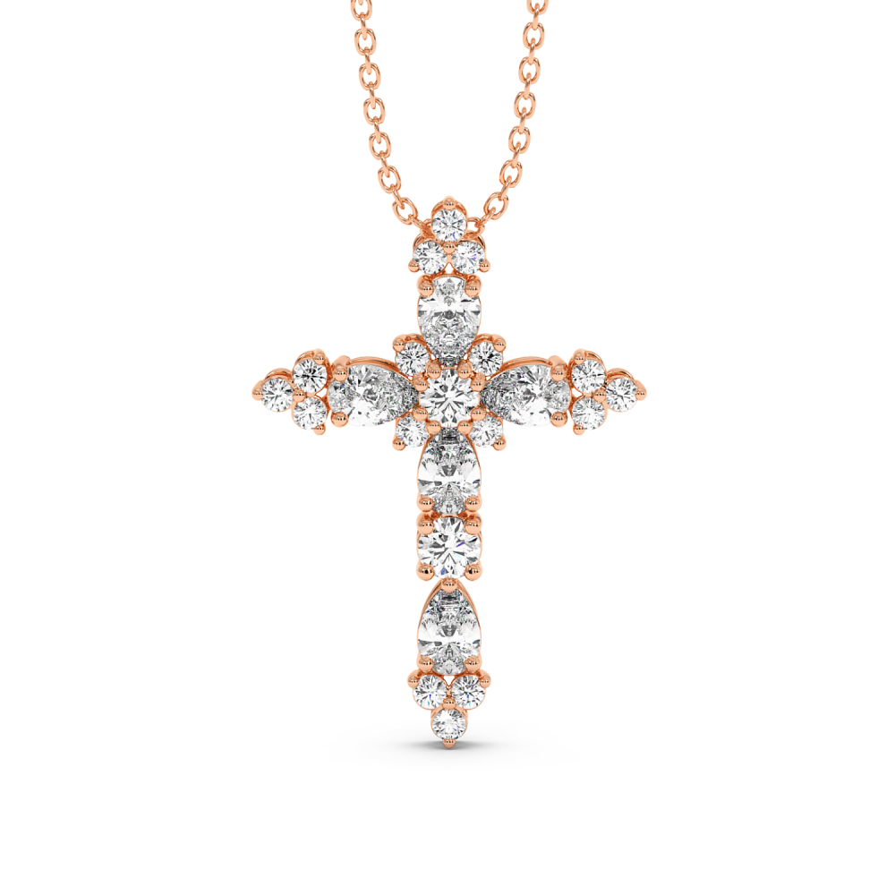 Pandantiv cruciulita din aur de 14 K, cu diamante pear de 0.83 ct si diamante rotunde de 0.22 ct. Greutatea cruciulitei este de aproximativ 3,5 grame. Accesati "SPECIFICATII" pentru mai multe detalii despre acest produs.