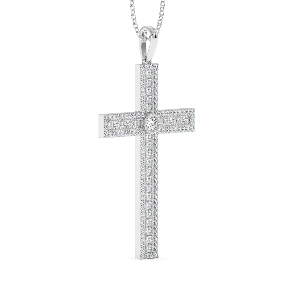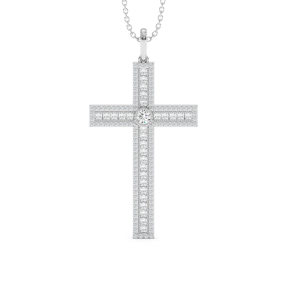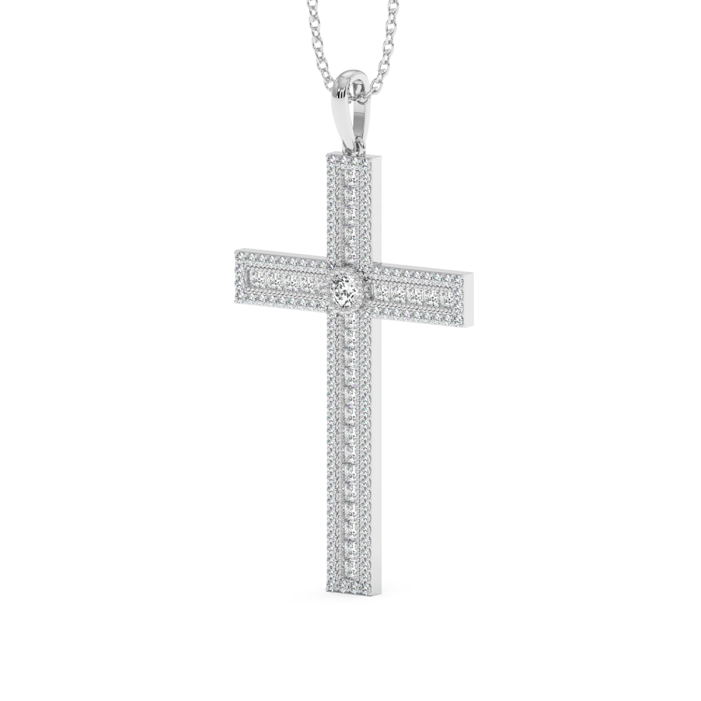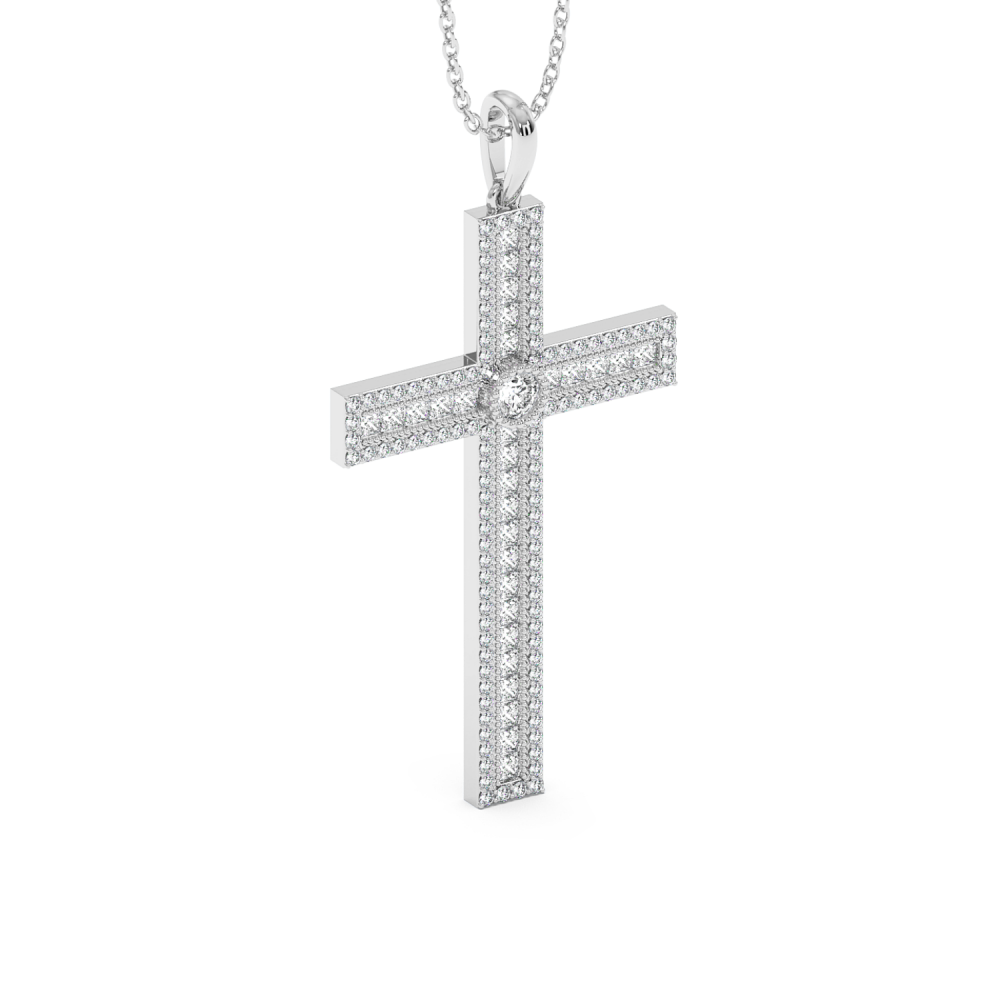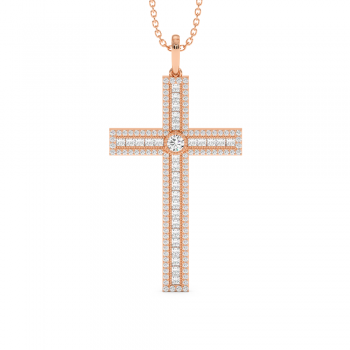 Pandantiv Cruciulita cu Diamante Rotunde de 0.46ct si Diamante Princess Cut de 0.58ct