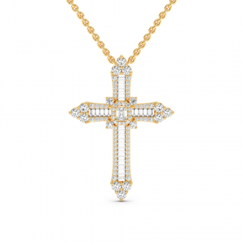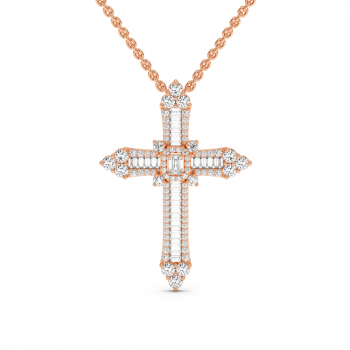 Pandantiv Cruciulita cu Diamante Rotunde de 1.04ct, Diamante Emerald Cut de 0.16ct si Diamante Baget de 0.30ct