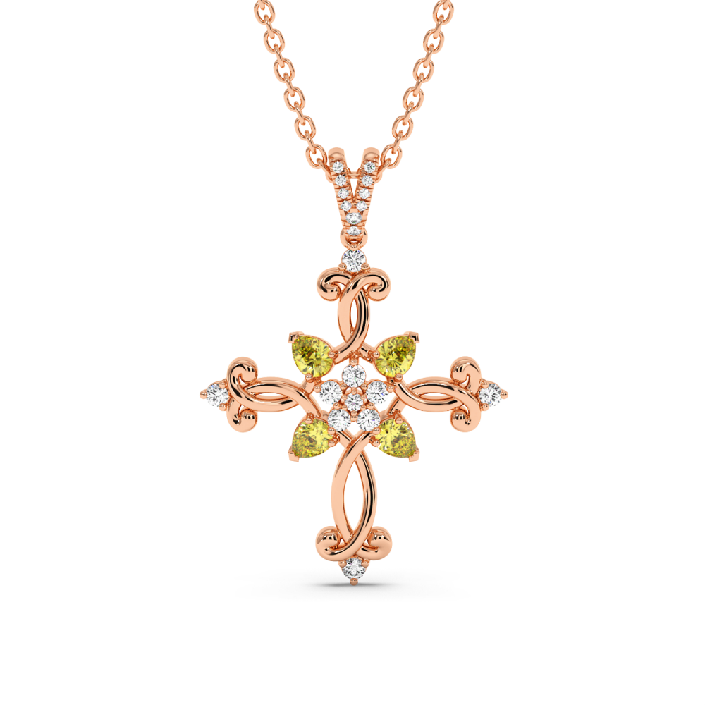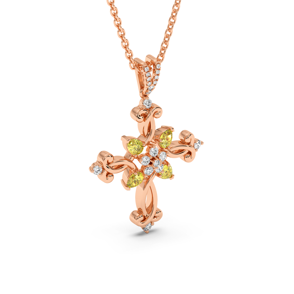 Pandantiv Cruciulita cu Safir galben de 0.84ct si Diamante de 0.21ct