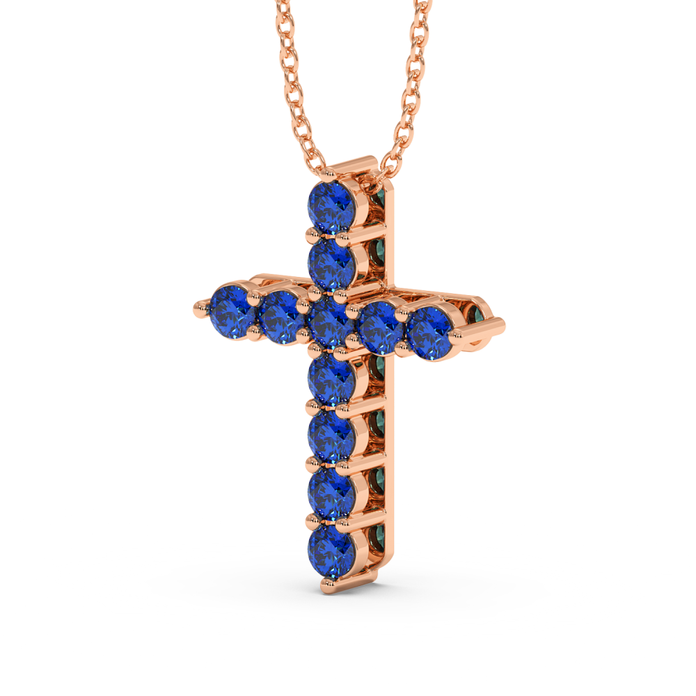 Pandantiv cruciulita din aur de 14 K, cu safire de 0.77 ct. Greutatea cruciulitei este de aproximativ 3.50 grame, dimensiunea este de 21mm.