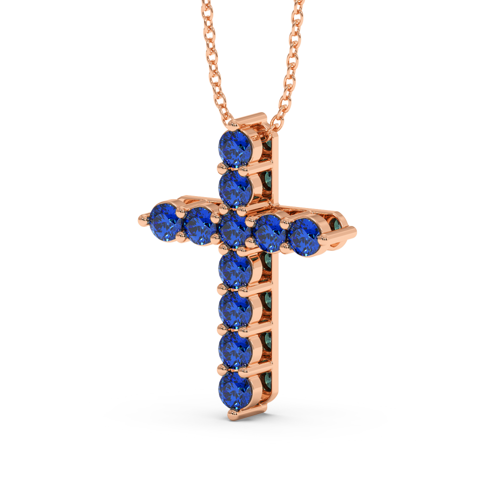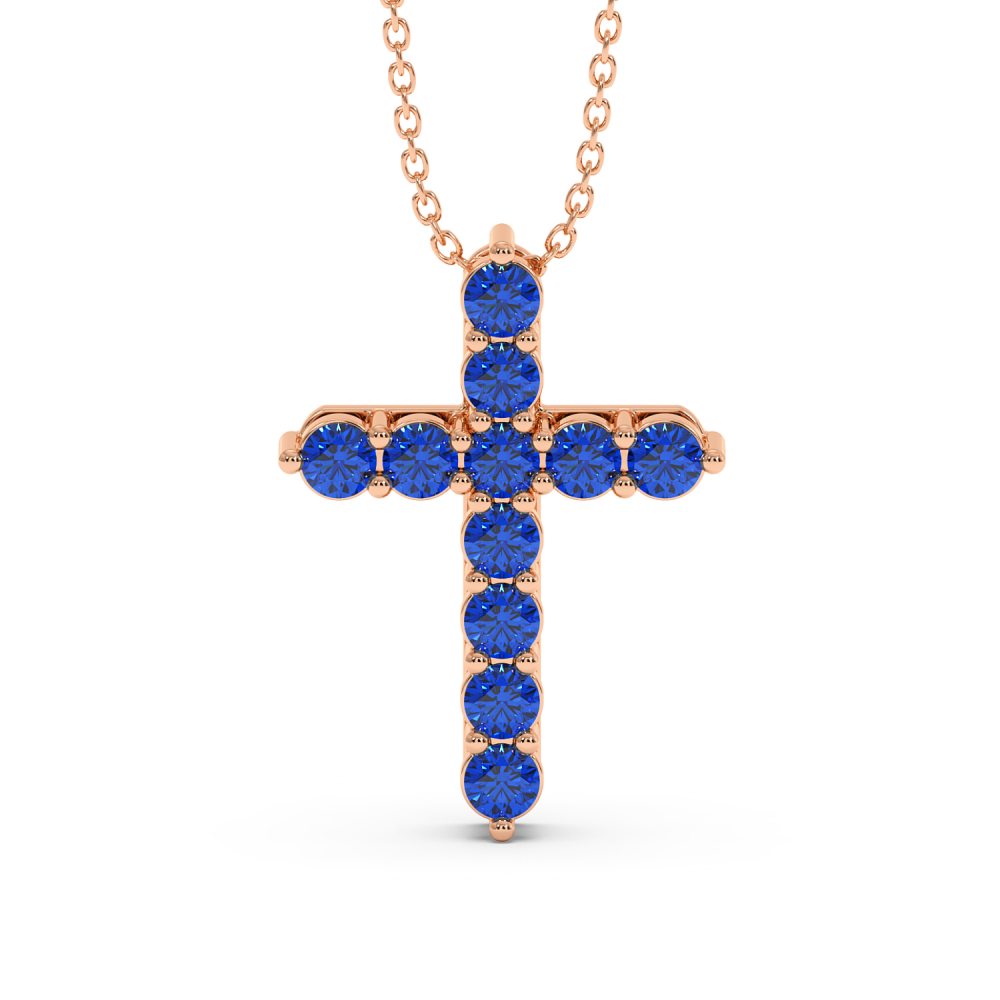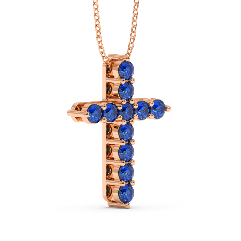 Pandantiv cruciulita din aur de 14 K, cu safire de 1.10 ct. Greutatea cruciulitei este de aproximativ 6.00 grame, dimensiunea este de 23mm.