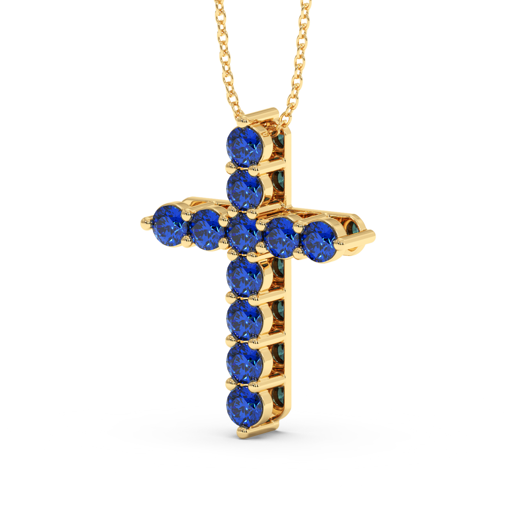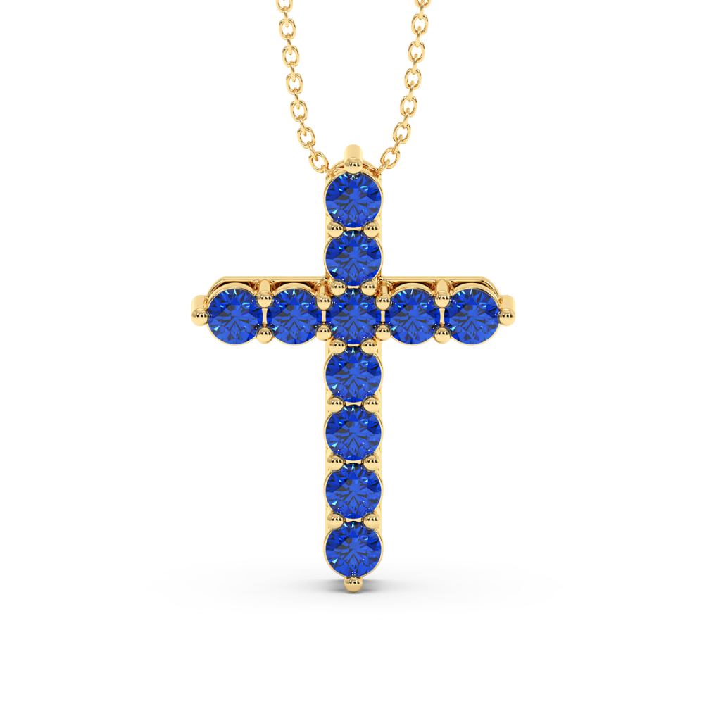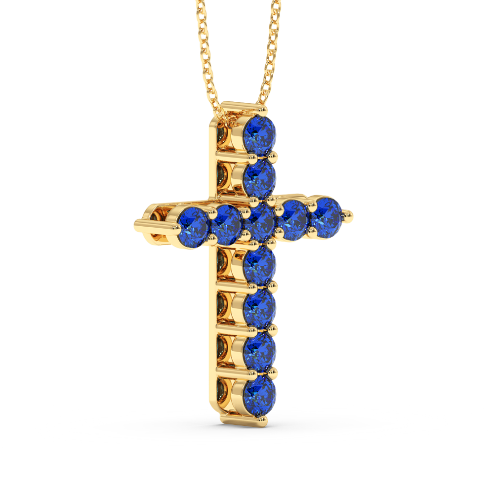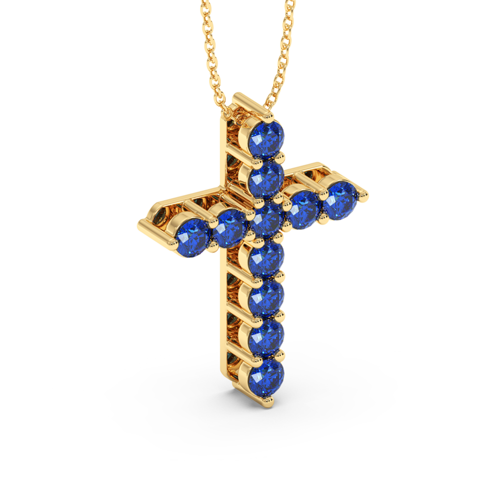 Pandantiv cruciulita din aur de 14 K, cu safire de 1.65 ct. Greutatea cruciulitei este de aproximativ 7.00 grame, dimensiunea este de 27mm.