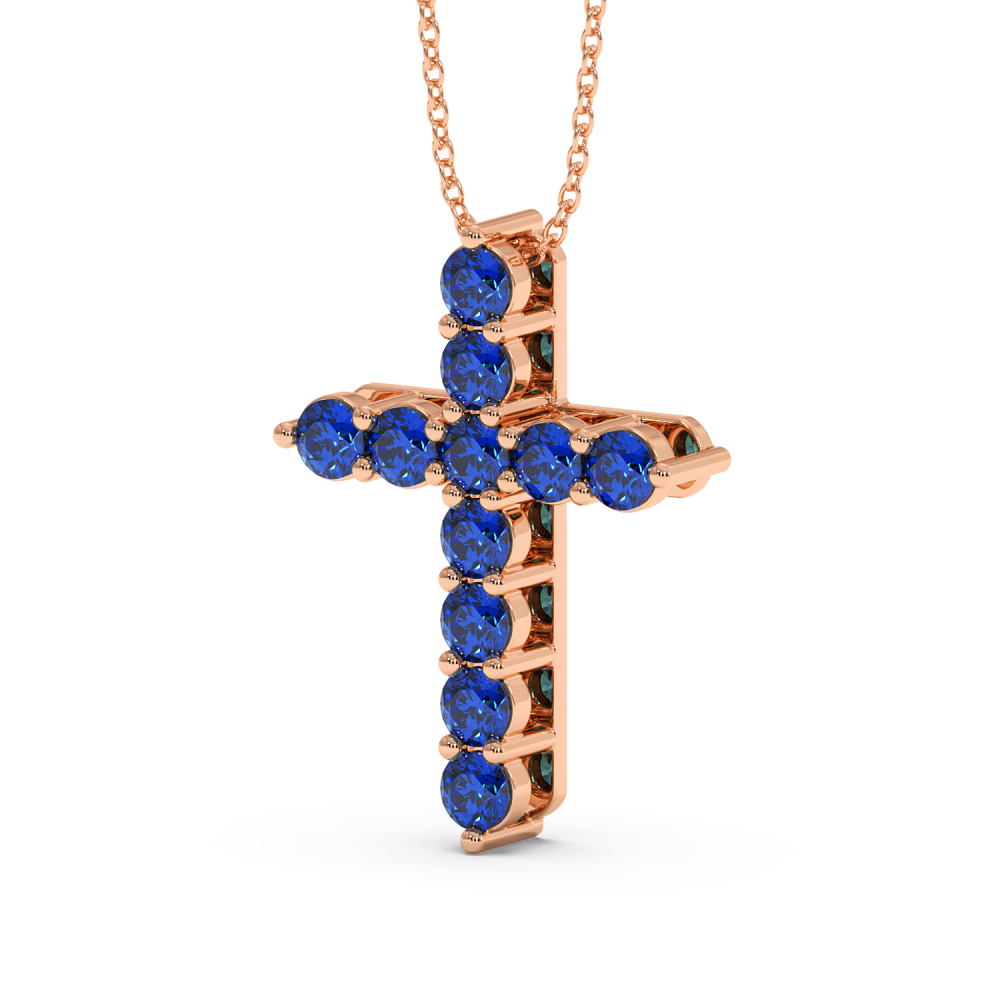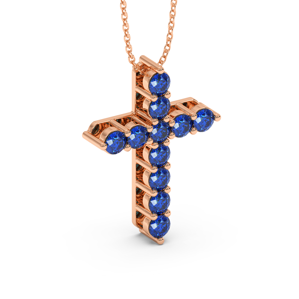 Pandantiv cruciulita din aur de 14 K, cu safire de 1.65 ct. Greutatea cruciulitei este de aproximativ 7.00 grame, dimensiunea este de 27mm.