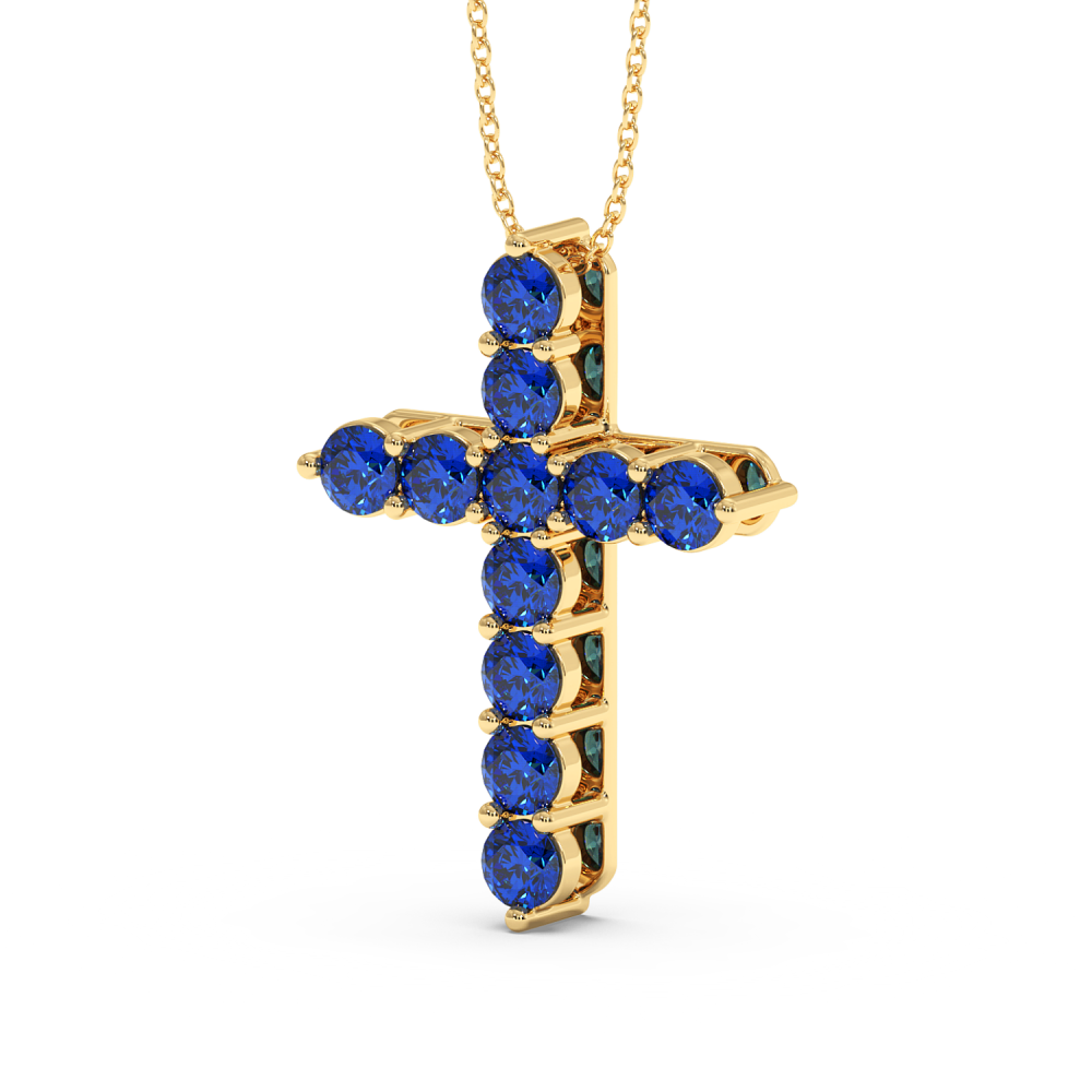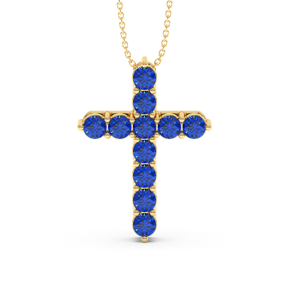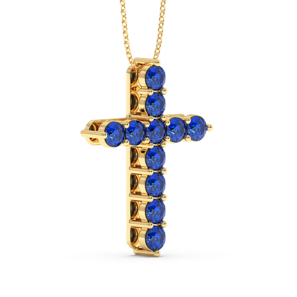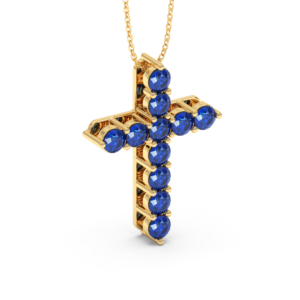 Pandantiv cruciulita din aur de 14 K, cu safire de 2.75 ct. Greutatea cruciulitei este de aproximativ 9.00 grame, dimensiunea este de 31mm.