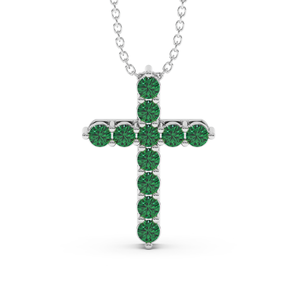 Pandantiv cruciulita din aur de 14 K, cu smaralde de 0.77 ct. Greutatea cruciulitei este de aproximativ 3.50 grame, dimensiunea este de 21mm.