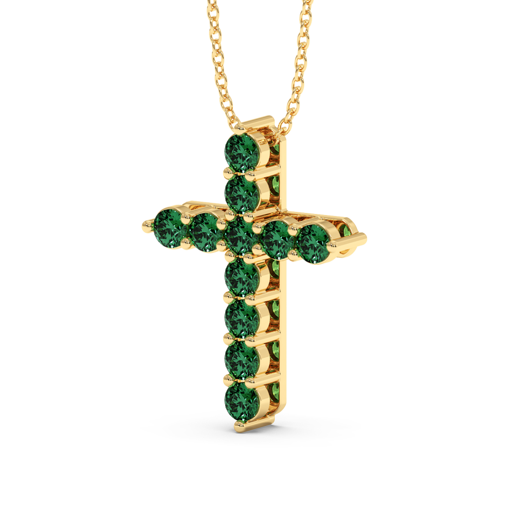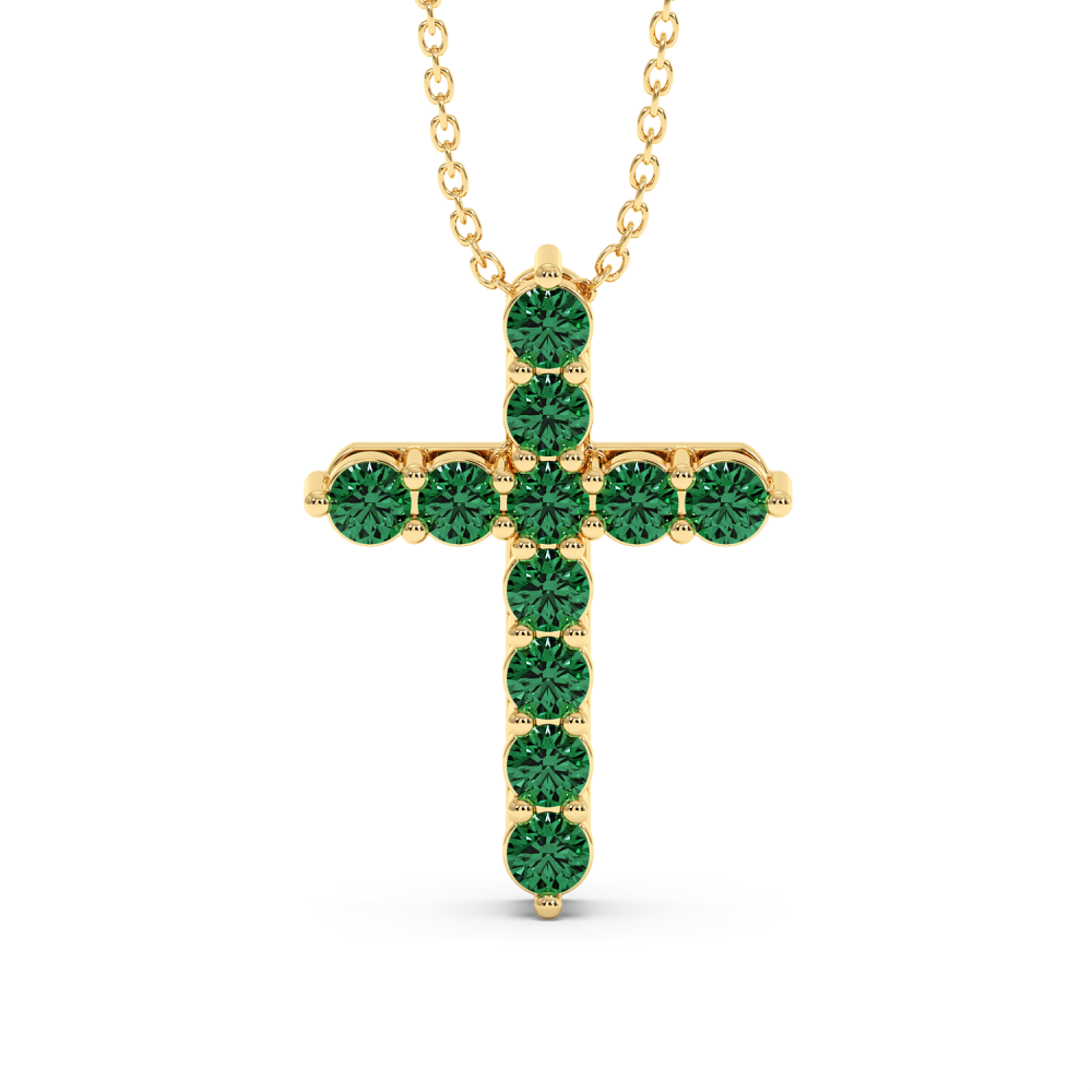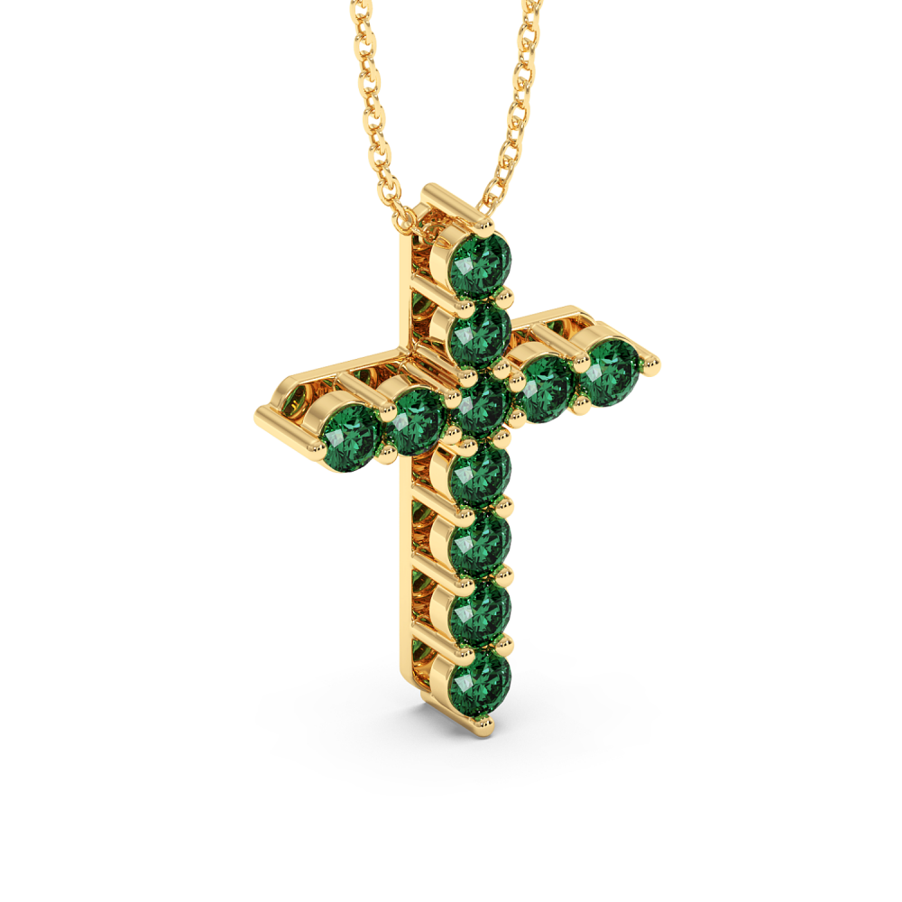 Pandantiv cruciulita din aur de 14 K, cu smaralde de 1.10 ct. Greutatea cruciulitei este de aproximativ 6.00 grame, dimensiunea este de 23mm.