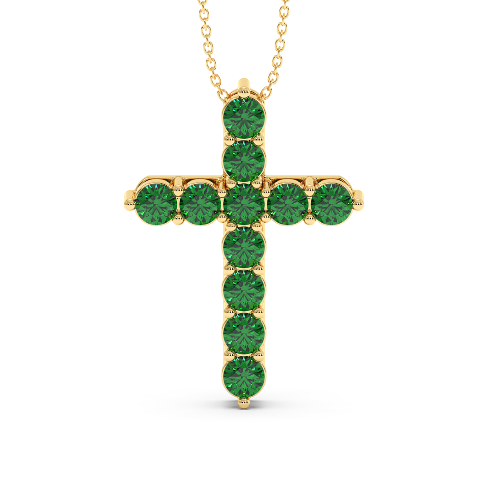 Pandantiv cruciulita din aur de 14 K, cu smaralde de 3.40 ct. Greutatea cruciulitei este de aproximativ 9.50 grame, dimensiunea este de 33mm.
