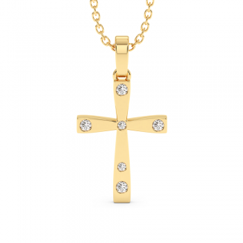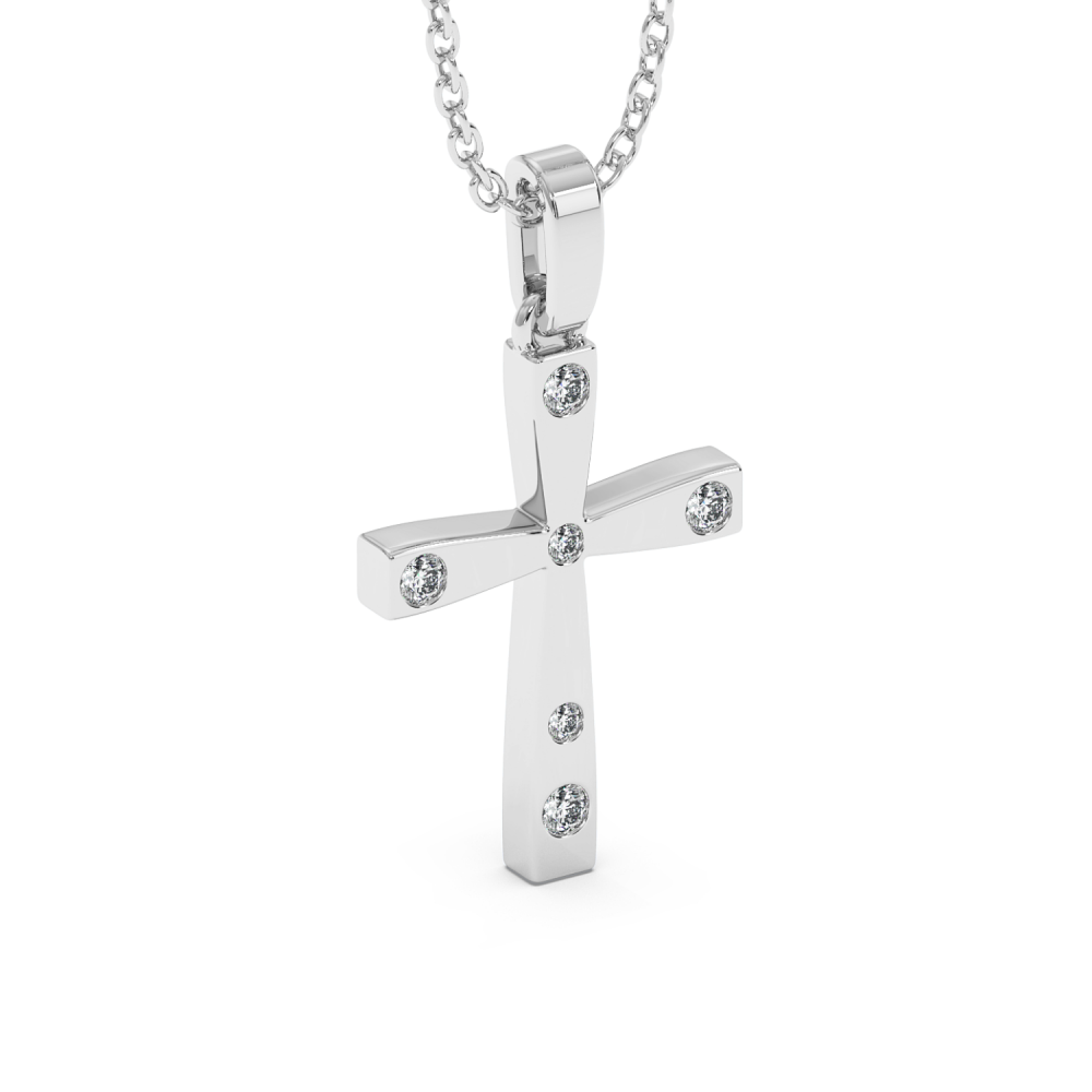 Pandantiv cruciulita din aur alb de 14 K, cu diamante de 0.10 ct. Greutatea colierului este de 2.63 grame.