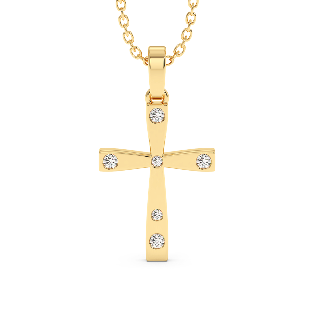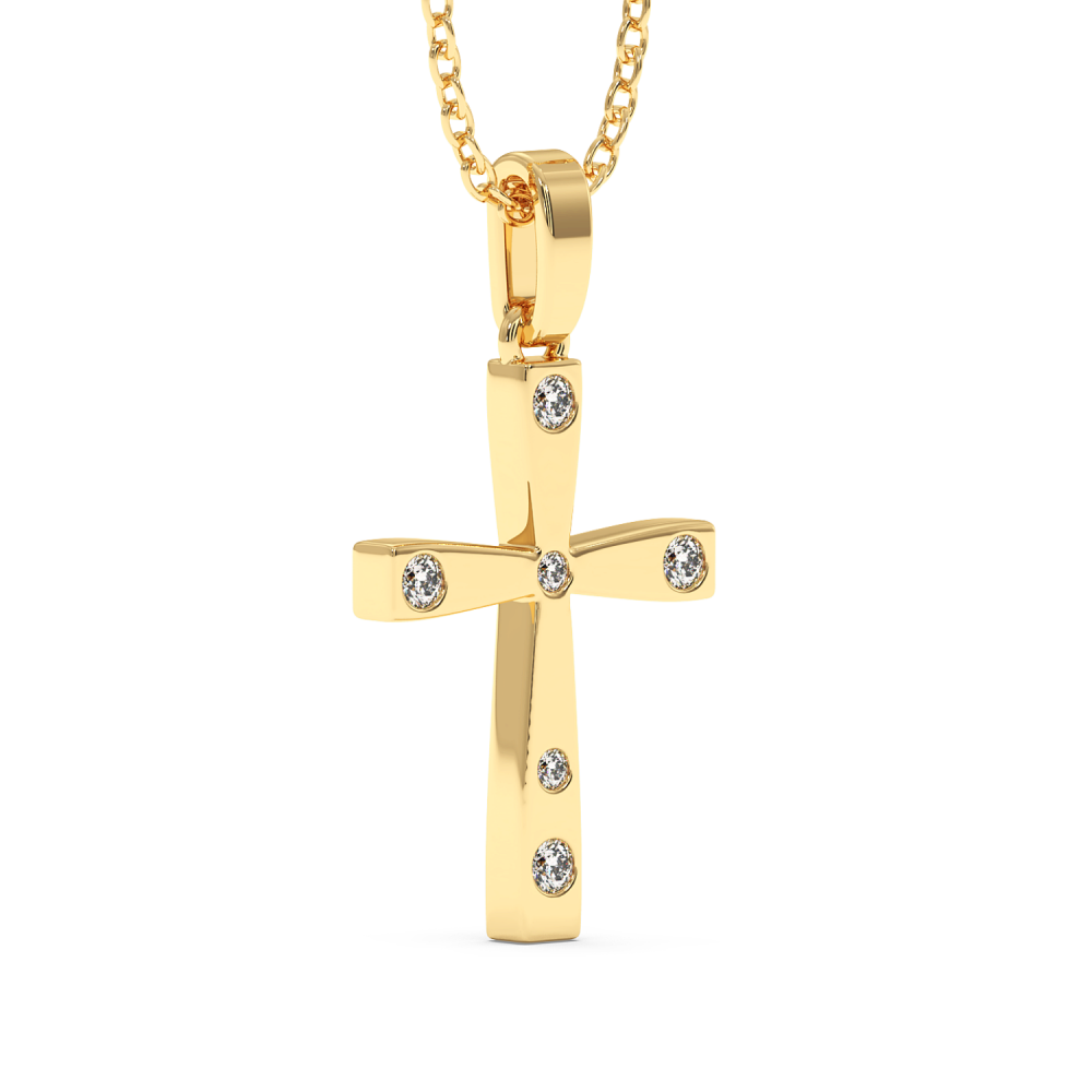 Pandantiv cruciulita din aur alb de 14 K, cu diamante de 0.10 ct. Greutatea colierului este de 2.63 grame.