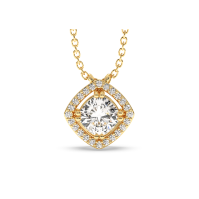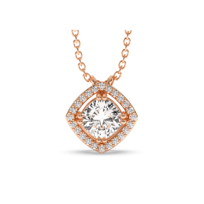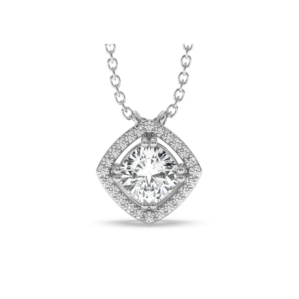 Pandantiv din aur alb de 14 K, cu Diamant central cushion cut de 0.86 ct si diamante laterale de 0.07. Taietură Cushion Cut. Greutatea pandantivului este de apx 2.85 grame. Pandantivul poate fi confectionat din aur alb, galben sau rose.