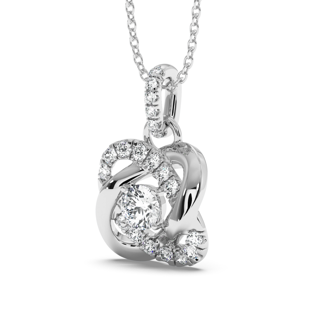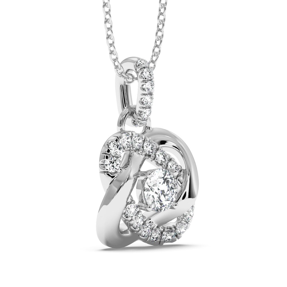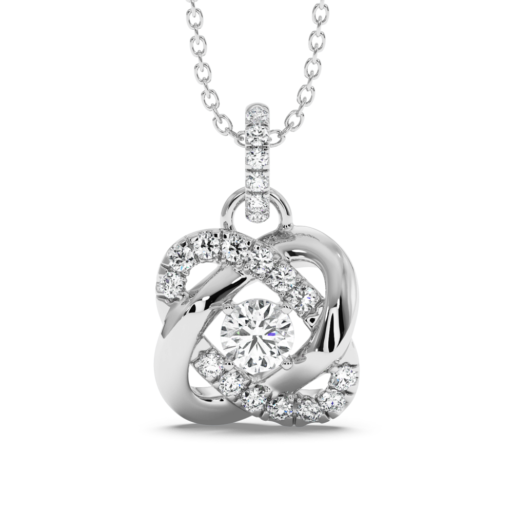 Pandantiv din aur alb de 14 K, cu diamant central de 0.29 ct si diamante laterale de 0.84 ct. Greutatea colierului este de apx 4.5 grame. Se poate confectiona din aur alb, galben sau rose.