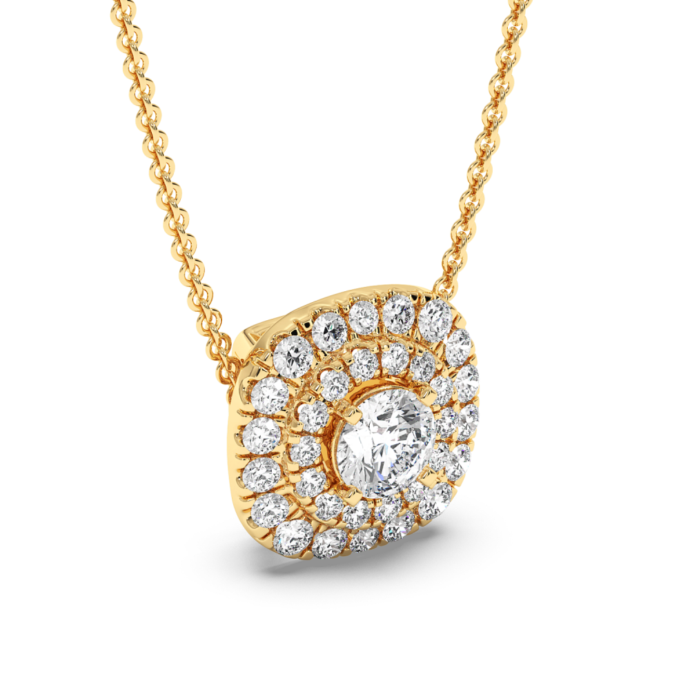 Pandantiv din aur alb de 14 K, cu diamant central de 0.59 ct si diamante laterale de 0.88 ct. Greutatea colierului este de apx 4.30 grame. Se poate confectiona din aur alb, galben sau rose.