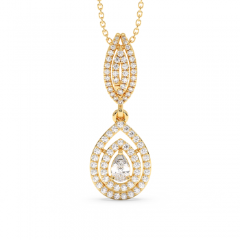 Pandantiv din aur de 14 K cu diamante central pear cut de 0.25ct si diamante laterale rotunde de 0.56ct. Greutatea pandantului este de aproximativ 2.50 grame.