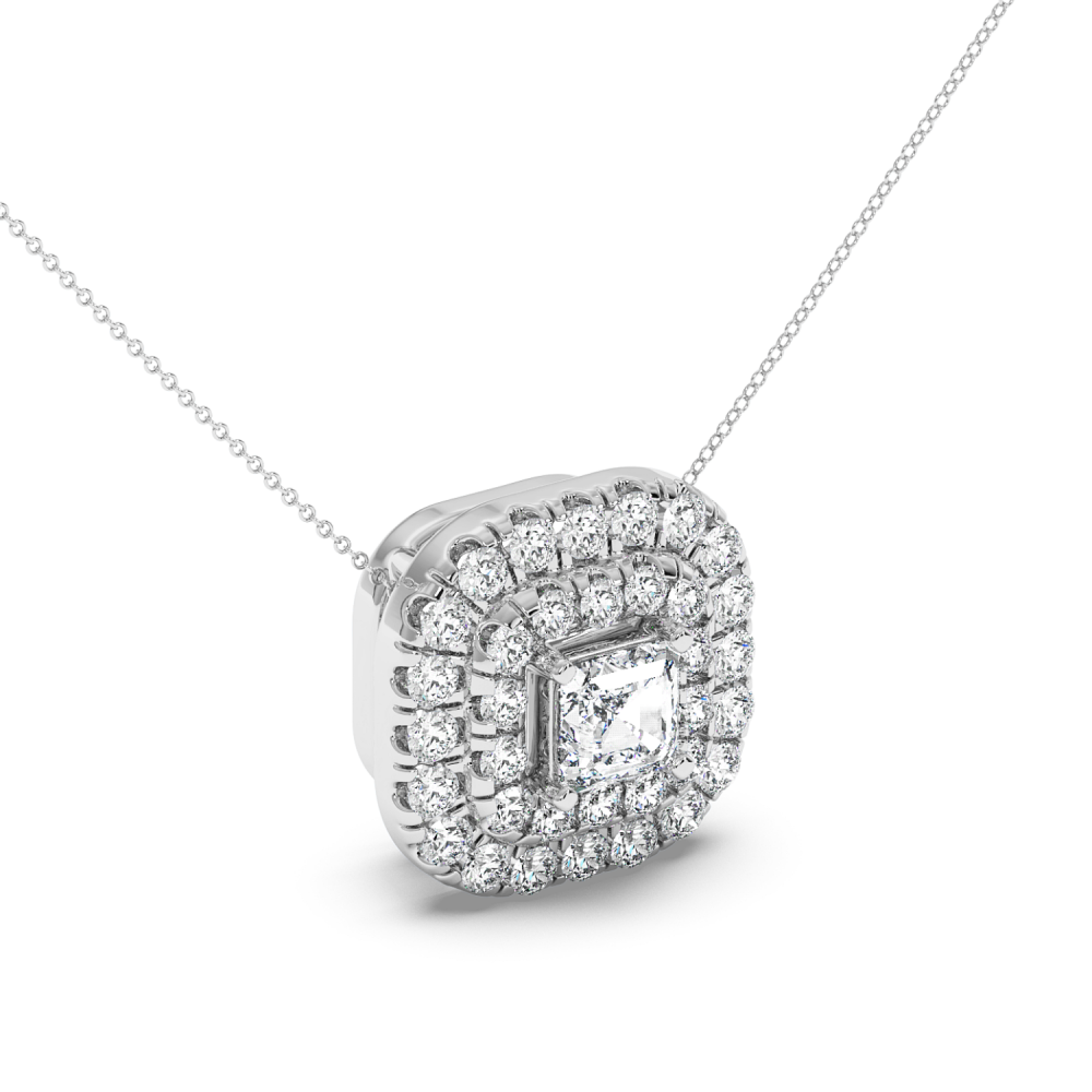 Pandantiv din aur alb de 14 K, cu diamant central princess de 0.41 ct si diamante laterale de 0.72 ct. Greutatea colierului este de apx 4.20 grame. Se poate confectiona din aur alb, galben sau rose.