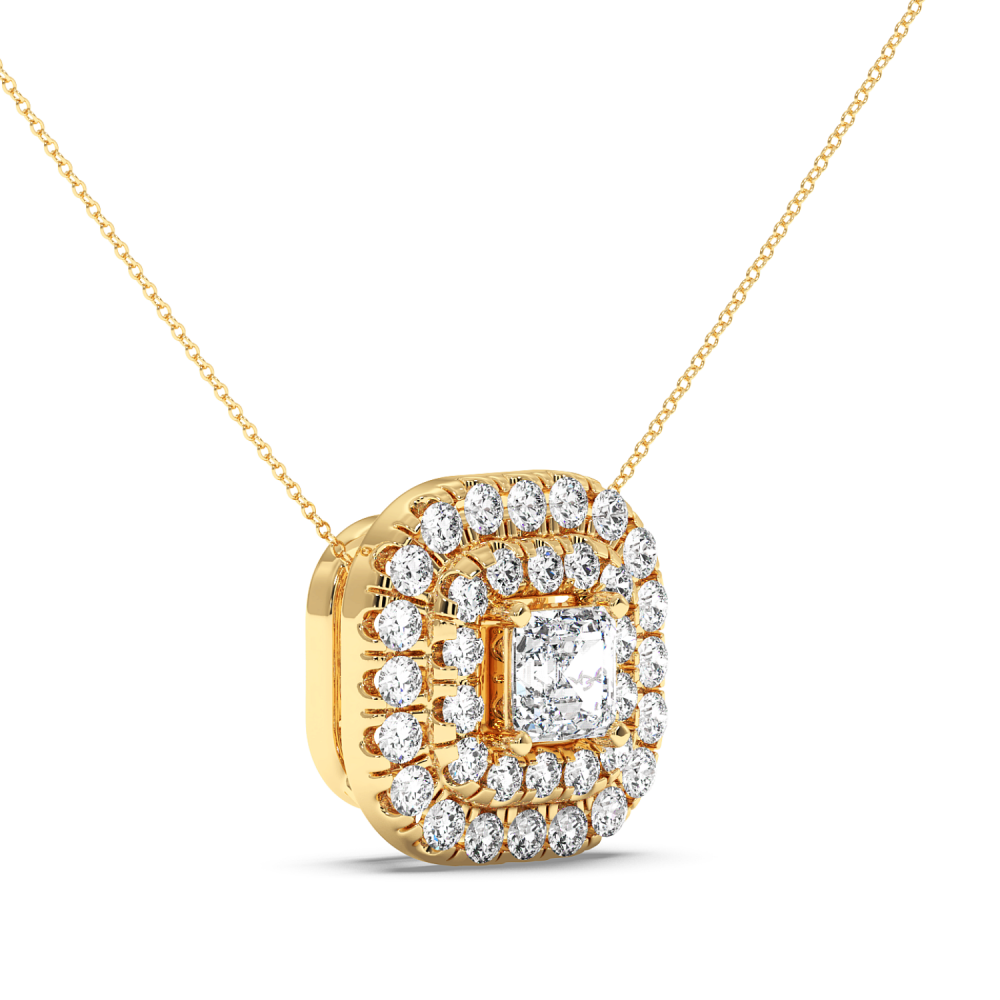 Pandantiv din aur alb de 14 K, cu diamant central princess de 0.41 ct si diamante laterale de 0.72 ct. Greutatea colierului este de apx 4.20 grame. Se poate confectiona din aur alb, galben sau rose.