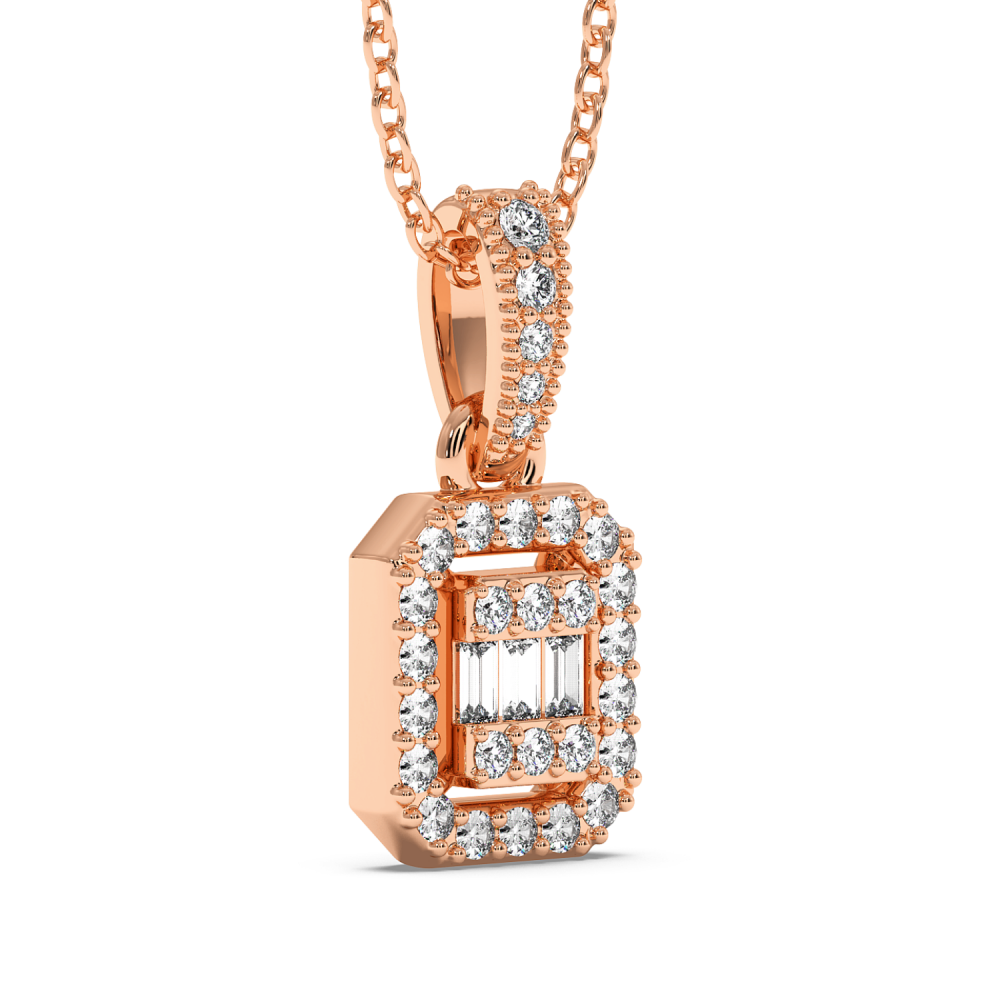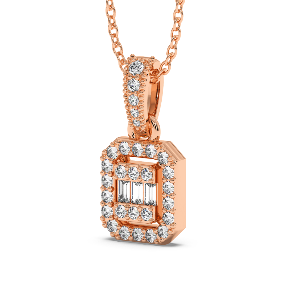 Pandantiv cu Diamante Bagheta de 0.32 ct. si diamante rotunde de 0.33 ct