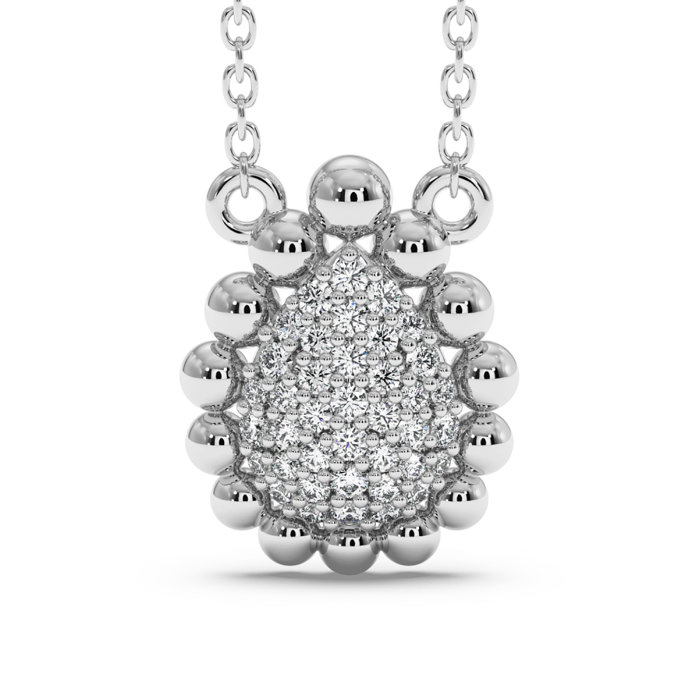 Pandantiv din aur alb de 14k, diamante de 0.17 carate. Greutatea pandantului este de 3.18 grame.