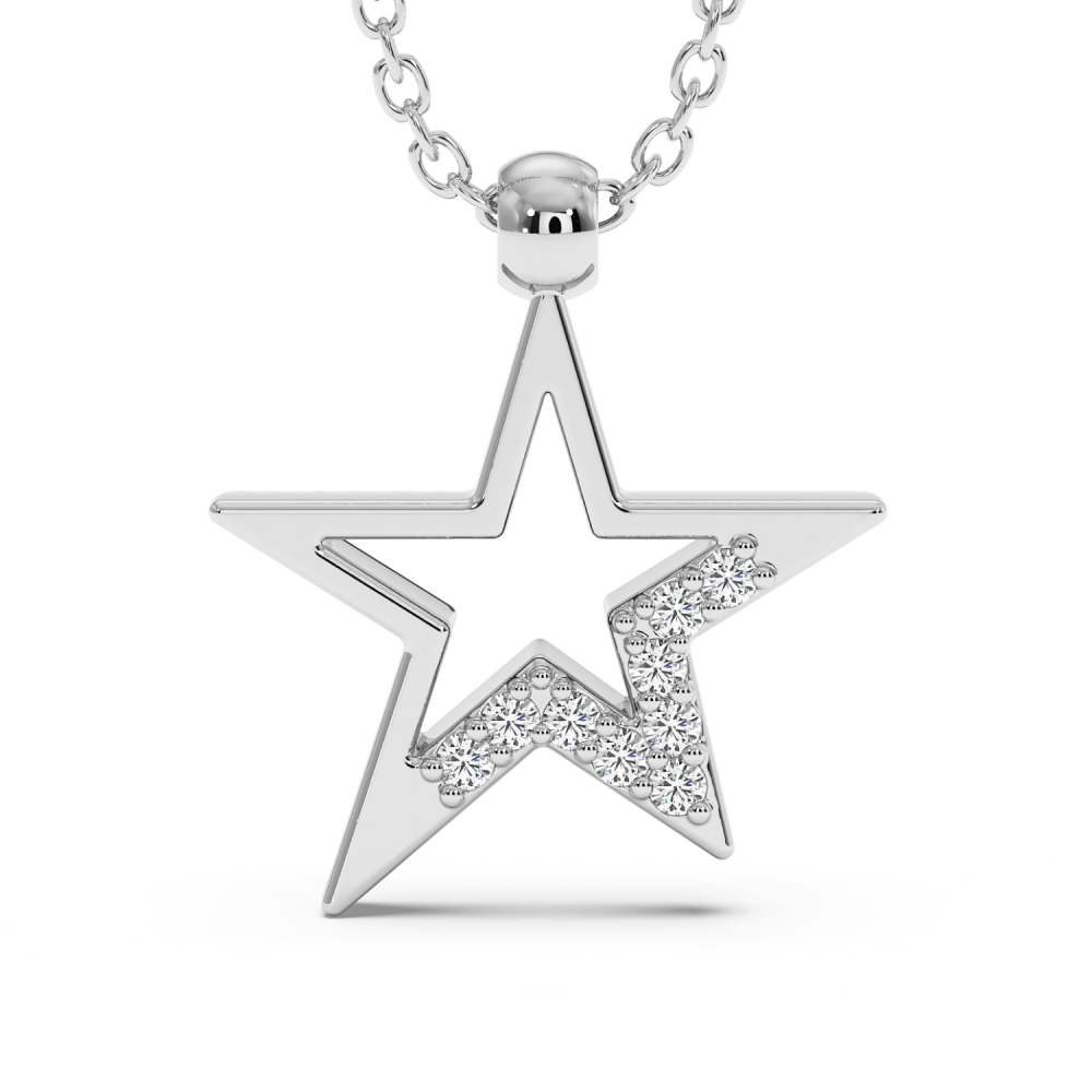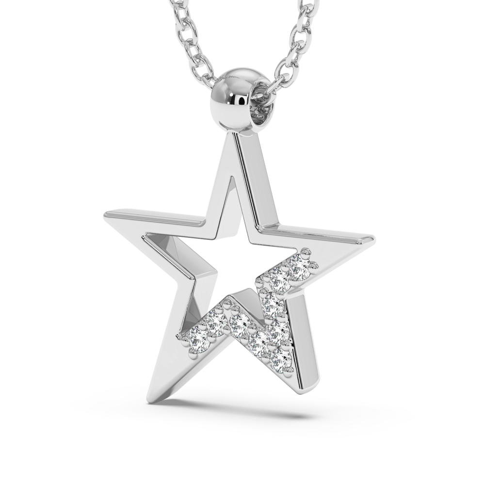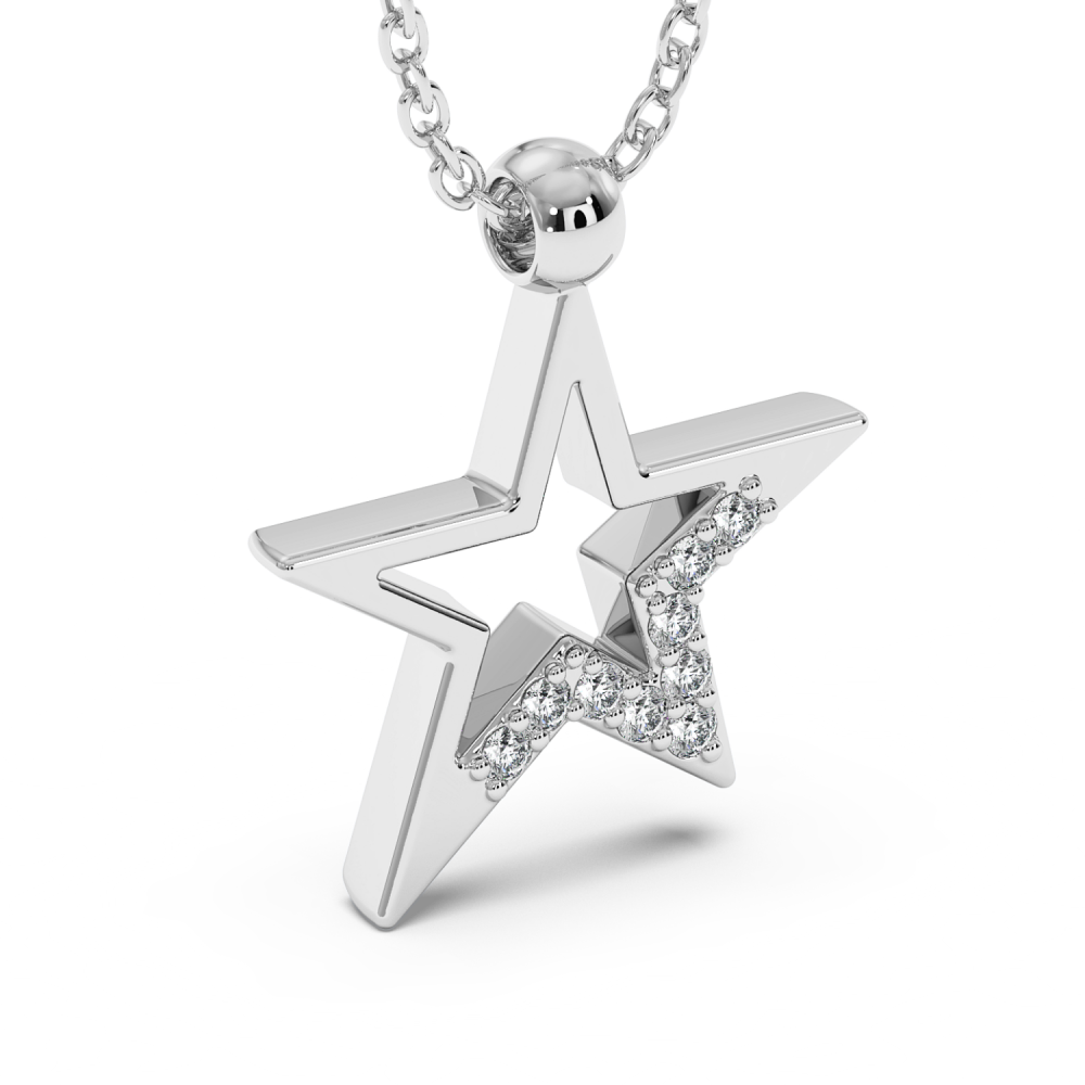 Pandantiv din aur alb de 14K, cu diamante de 0.03 ct. Greutatea colierului este de 1.35 grame.