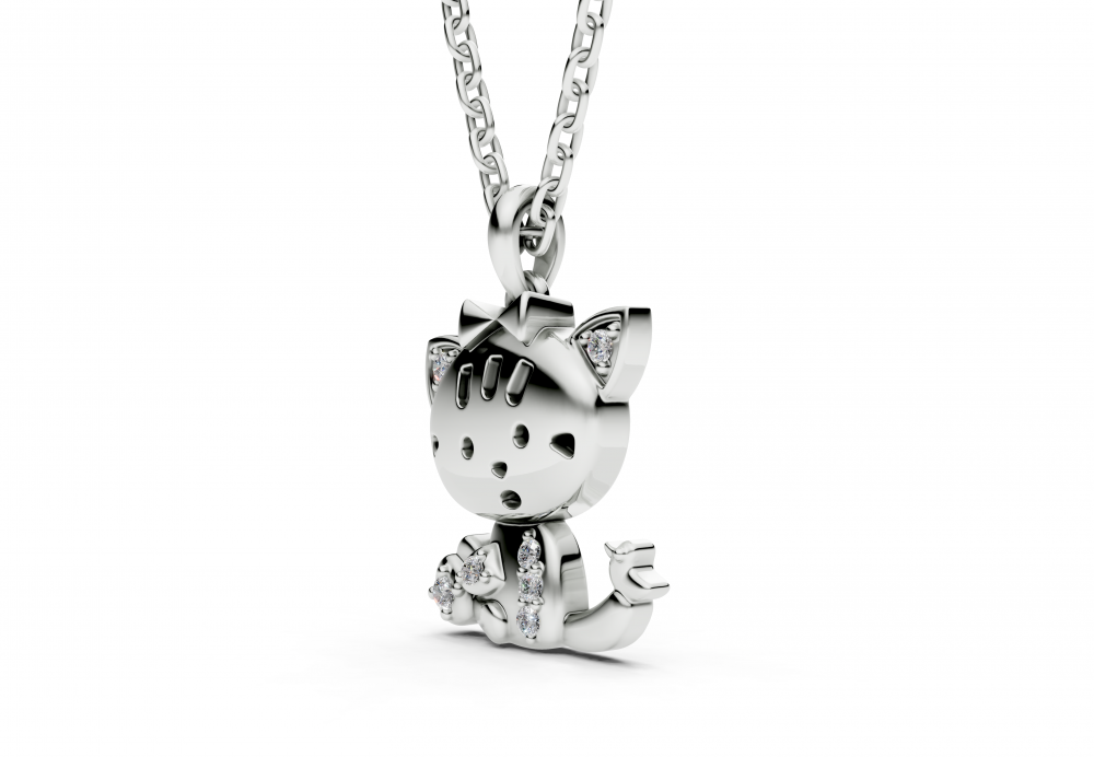 Pandantiv din aur alb de 14k, cu diamante de 0.05ct. Pandantul are aproximativ 1.4cm lungime. Greutatea pandantului este de aproximativ 4.40 grame.