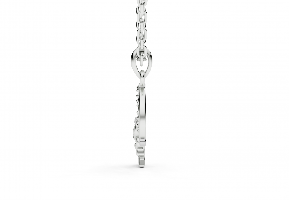 Pandantiv din aur alb de 14k, cu diamante de 0.06ct. Pandantul are aproximativ 1.3cm lungime. Greutatea pandantului este de aproximativ 2 grame.