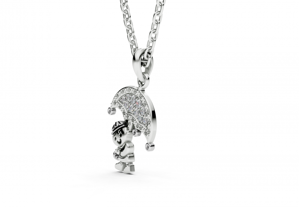 Pandantiv din aur alb de 14k, cu diamante de 0.06ct. Pandantul are aproximativ 1.3cm lungime. Greutatea pandantului este de aproximativ 2 grame. Putem face la comanda pandantivul si din aur de 18k. Accesati "SPECIFICATII" pentru mai multe detalii despre acest produs.