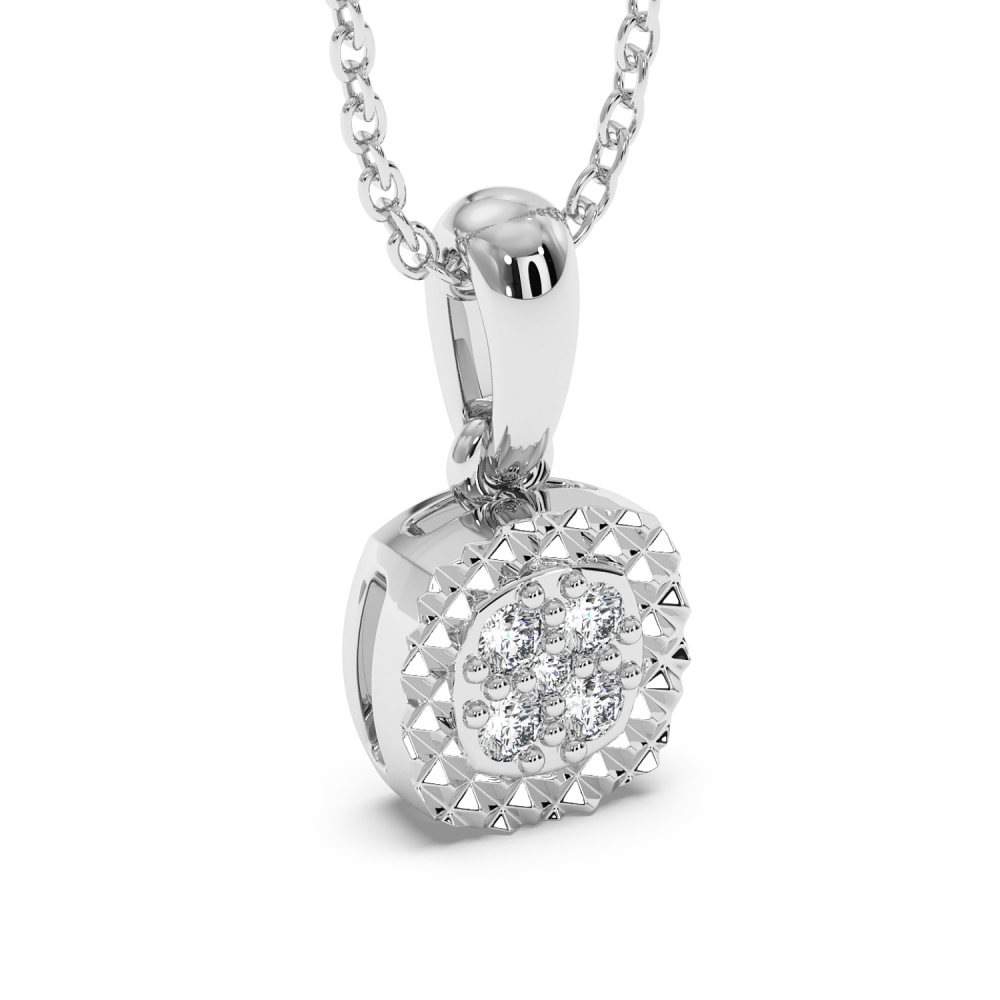 Pandantiv din aur alb de 14K, cu diamante de 0.07ct. Greutatea pandantivului este de aproximativ 2.80 grame. Lungimea pandativului este de 1.30 cm.