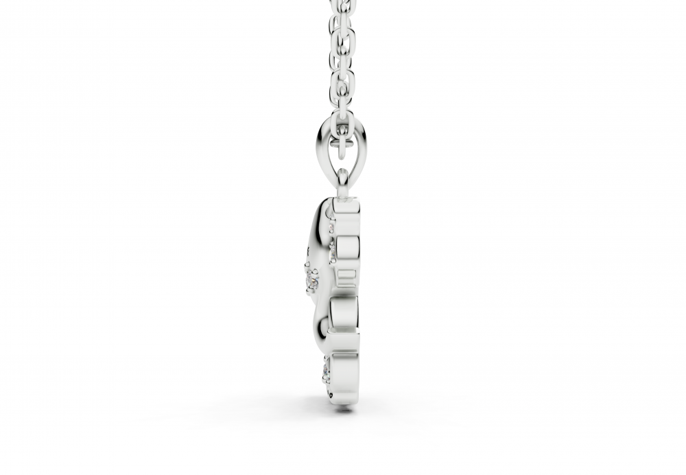 Pandantiv din aur alb de 14k, cu diamante de 0.07ct. Pandantul are aproximativ 1.3cm lungime. Greutatea pandantului este de aproximativ 3.90 grame.