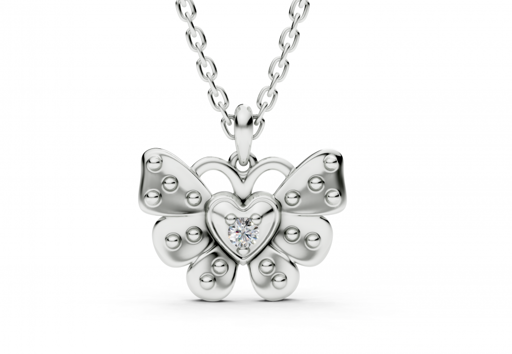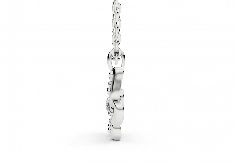 Pandantiv din aur alb de 14k, cu diamante de 0.07ct. Pandantul are aproximativ 1.2cm lungime. Greutatea pandantului este de aproximativ 4 grame.