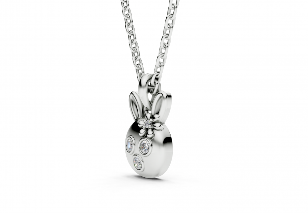 Pandantiv din aur alb de 14k, cu diamante de 0.08ct. Pandantul are aproximativ 1.1cm lungime. Greutatea pandantului este de aproximativ 2.90 grame.