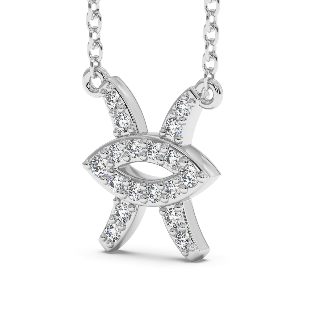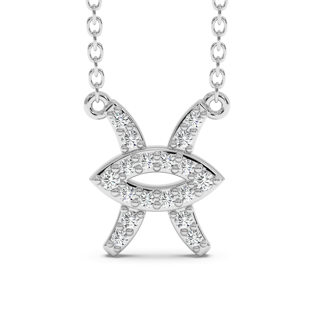 Pandantiv din aur alb de 14 K, zodia Pesti, cu diamante de 0.10 ct. Greutatea colierului este de 2.21 grame. Accesati " SPECIFICATII " pentru mai multe detalii despre acest produs. Pentru o evaluare corecta a diamantelor, consultati graficul de mai jos