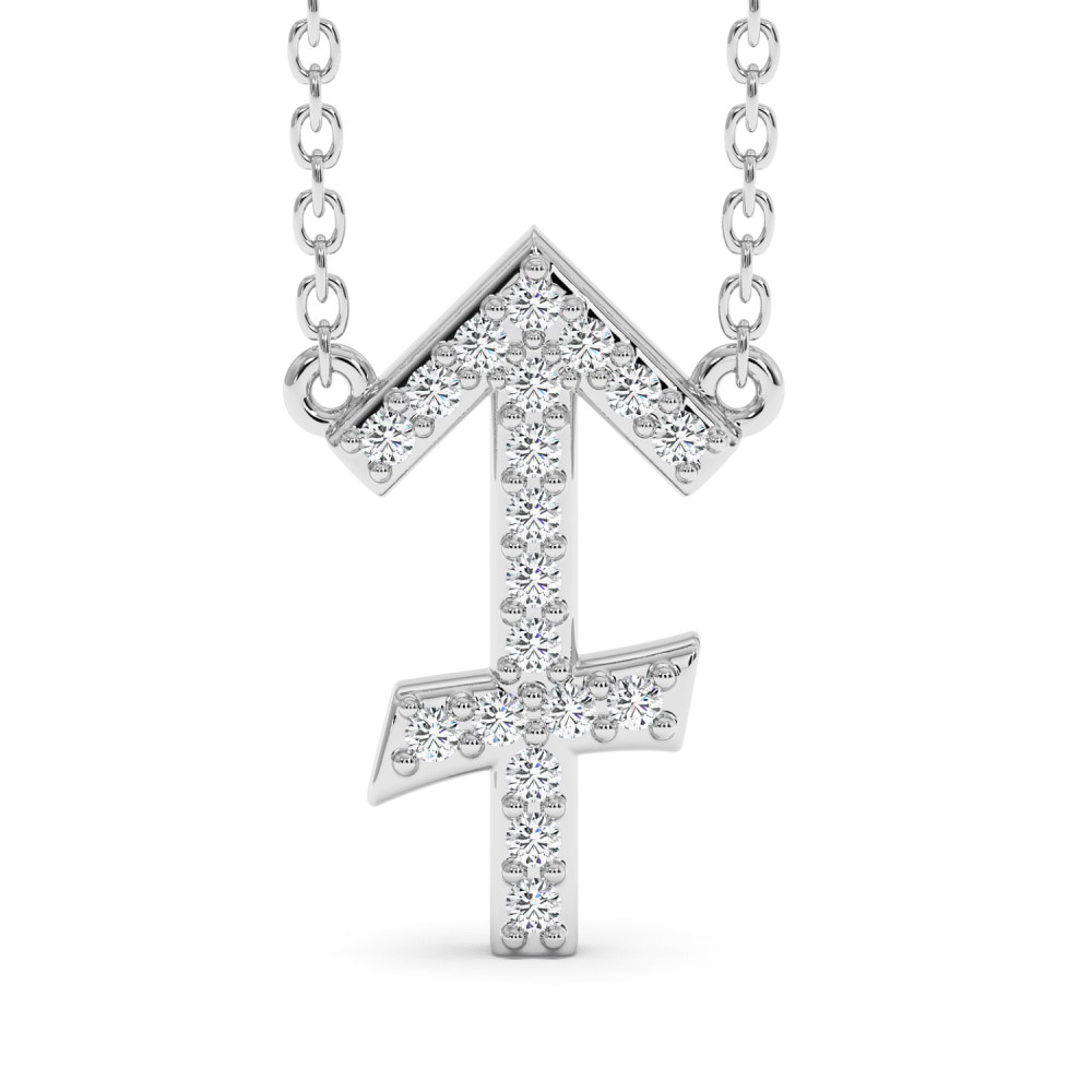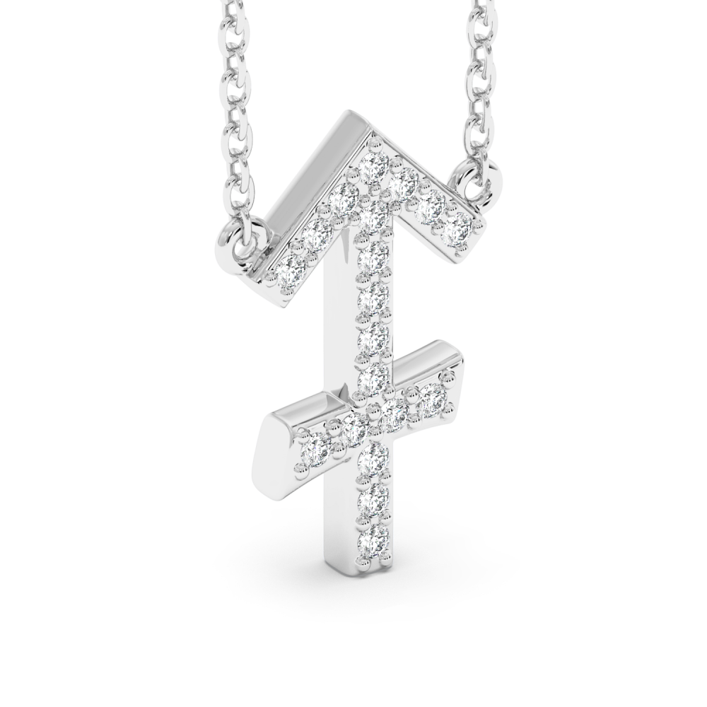 Pandantiv din aur alb de 14 K, zodia Sagetator, cu diamante de 0.12 ct. Greutatea colierului este de 2.41 grame. Accesati " SPECIFICATII " pentru mai multe detalii despre acest produs. Pentru o evaluare corecta a diamantelor, consultati graficul de mai jos