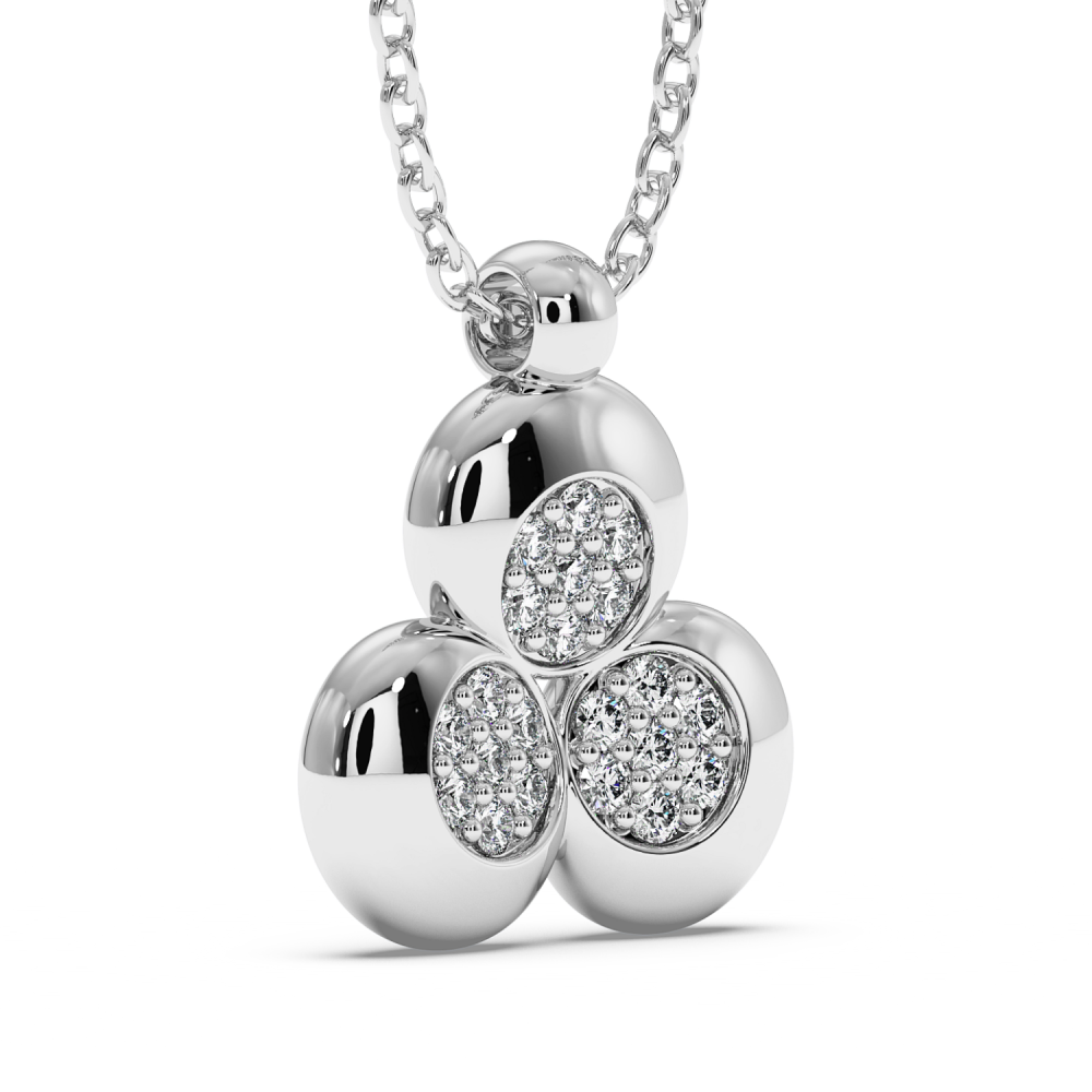 Pandantiv din aur alb de 14K, cu diamante de 0.12 ct. Greutatea colierului este de 3.82 grame.