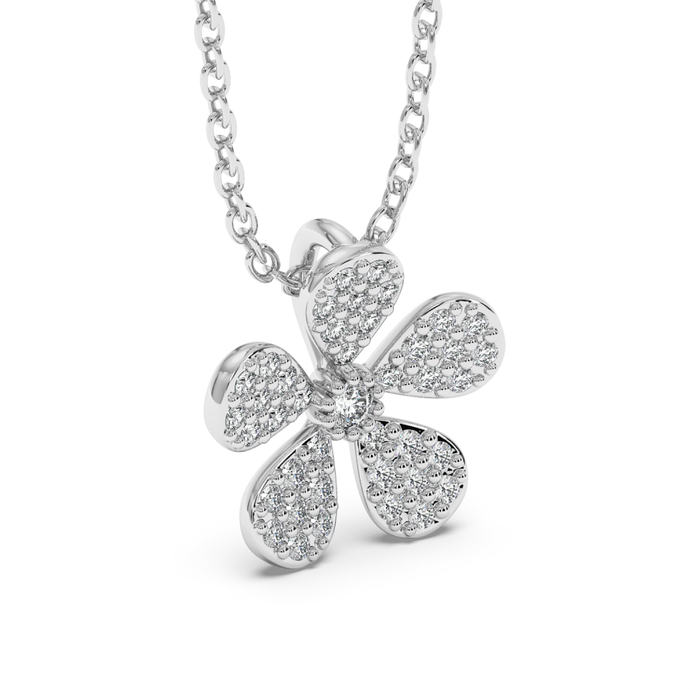 Pandantiv din aur alb de 14K, cu diamante de 0.13 carate.  Greutatea pandantului este de apx 2.44 grame.