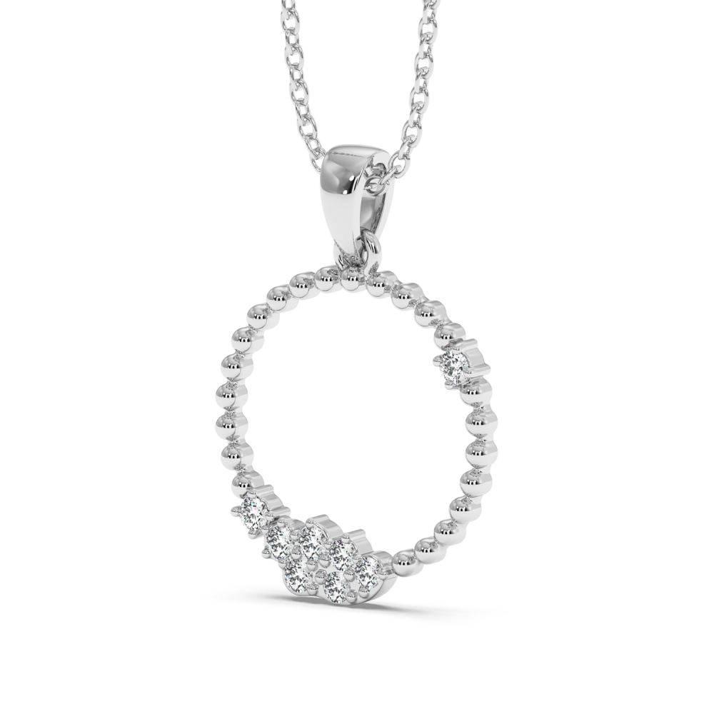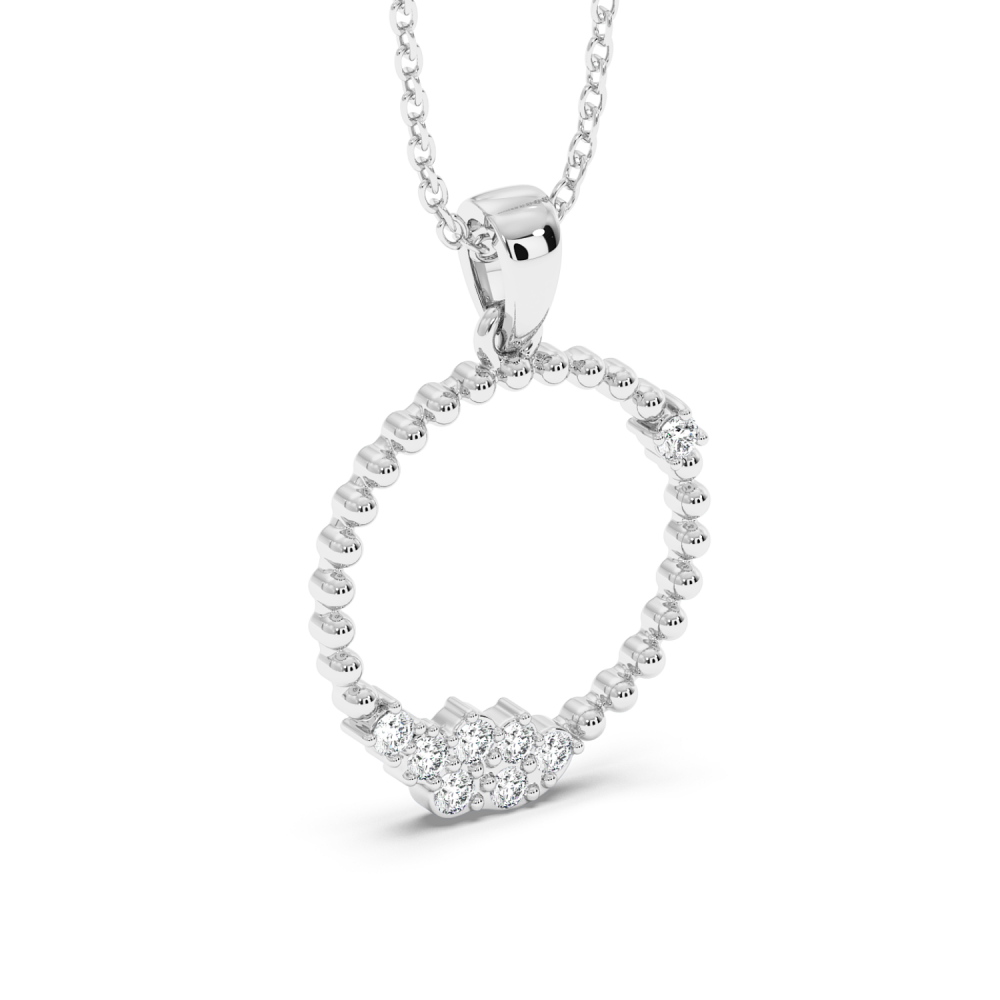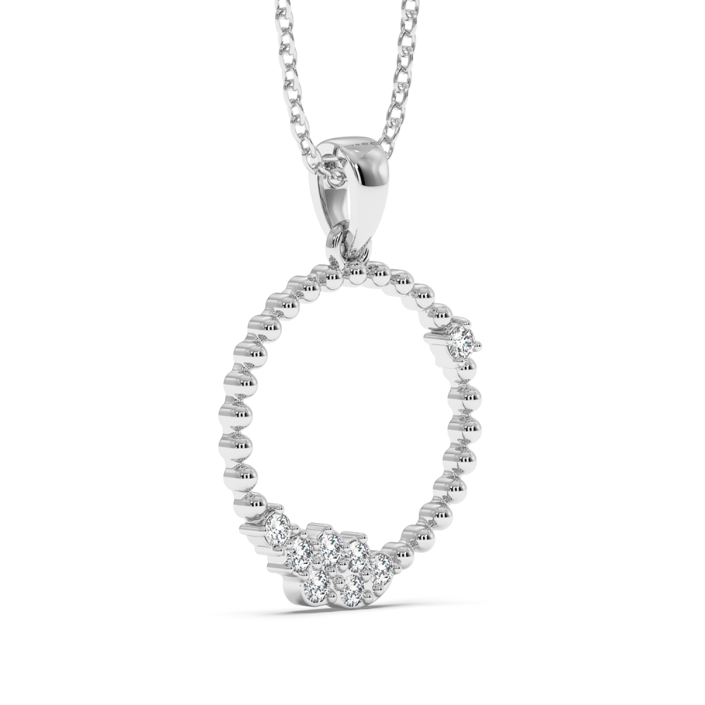 Pandantiv din aur alb de 14 K, cu diamante de 0.14 ct. Greutatea este de 3.48 grame.