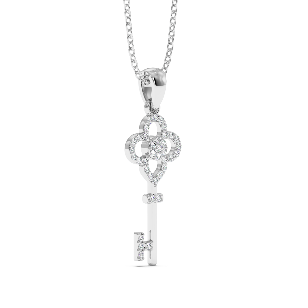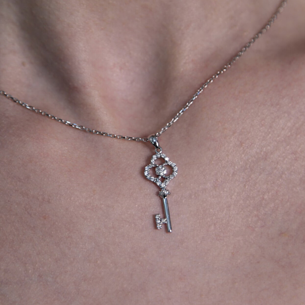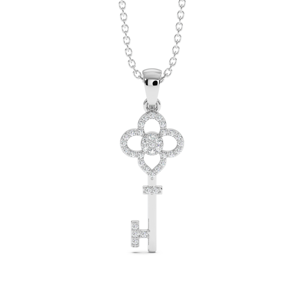 Pandantiv din aur alb de 14K, cu diamante de 0.15 carate. Greutatea pandantului este de 3.10 grame.