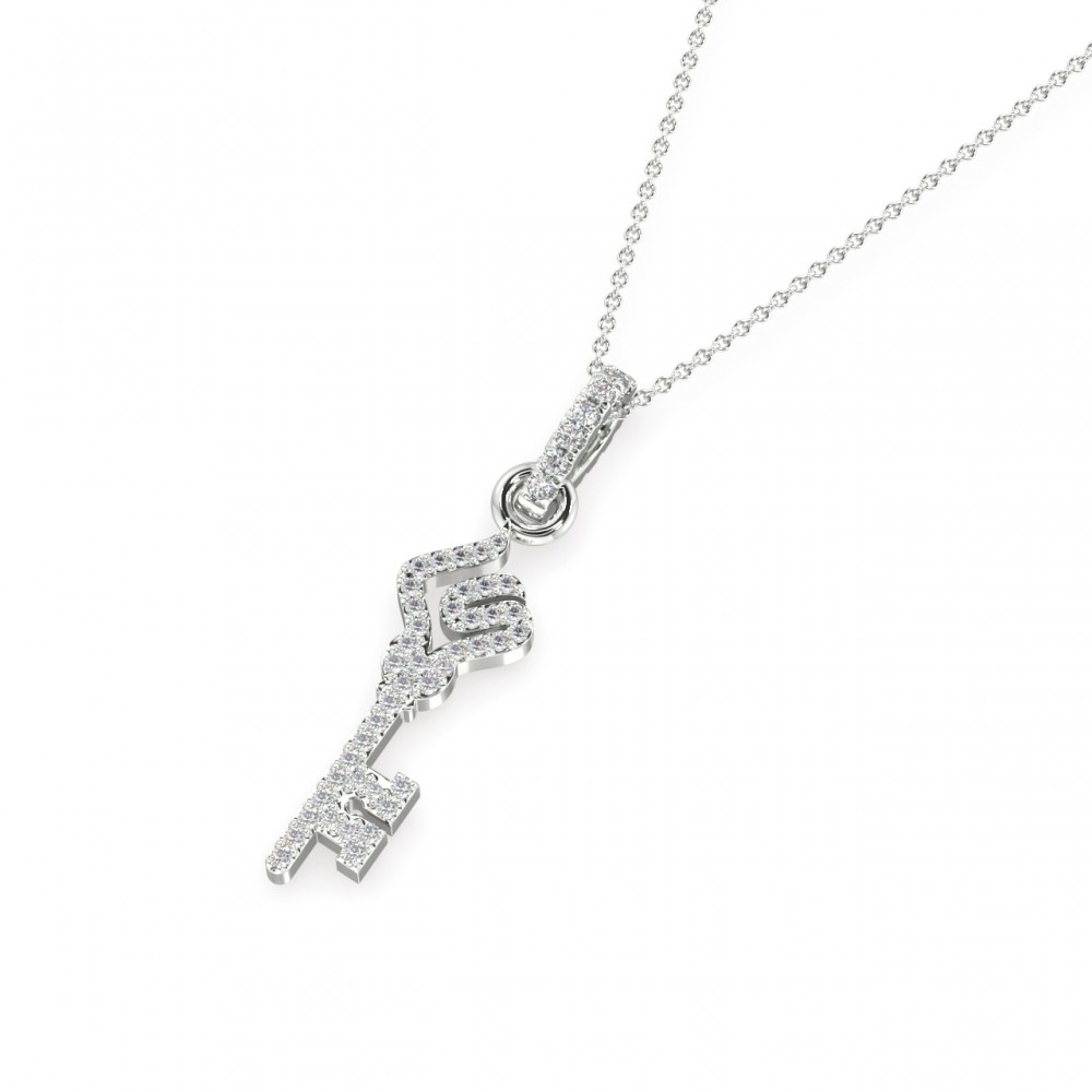 Pandantiv din aur alb de 14k, diamante de 0.22 carate. Greutatea pandantului este de aproximativ 2.80 grame. Lungimea pandantului este de 2 cm