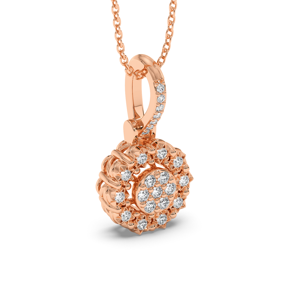 Pandantiv din aur alb de 14K, cu diamante de 0.24ct. Greutatea pandantivului este de aproximativ 3 grame. Lungimea pandativului este de 2cm.