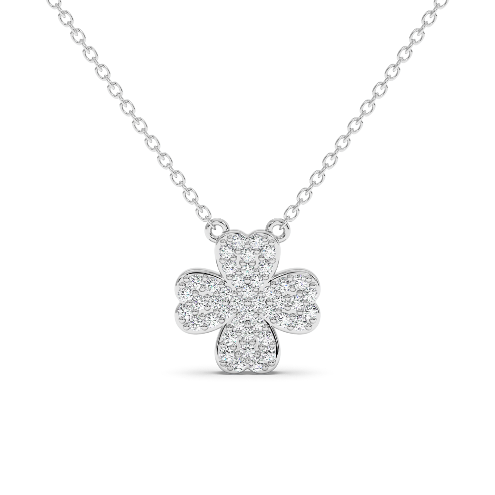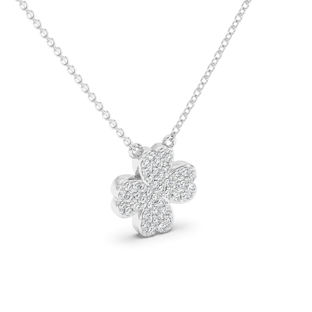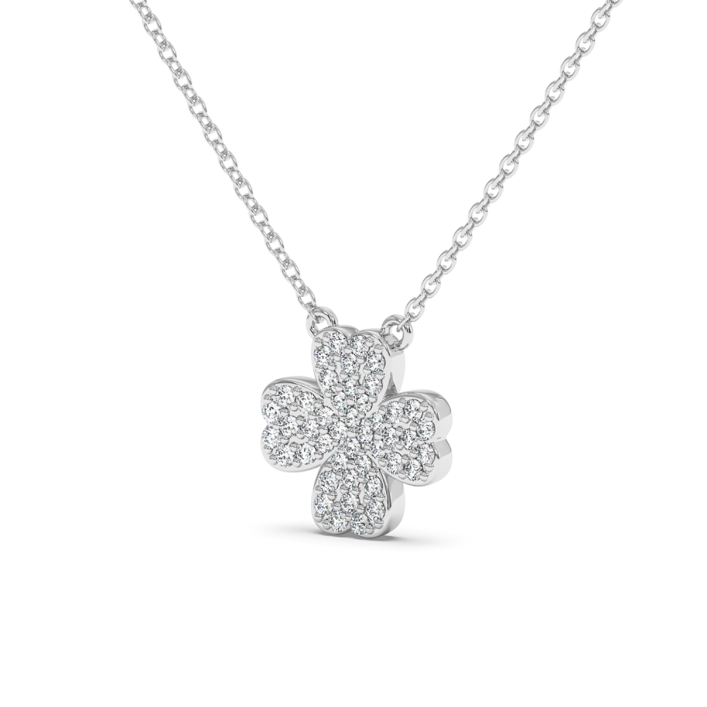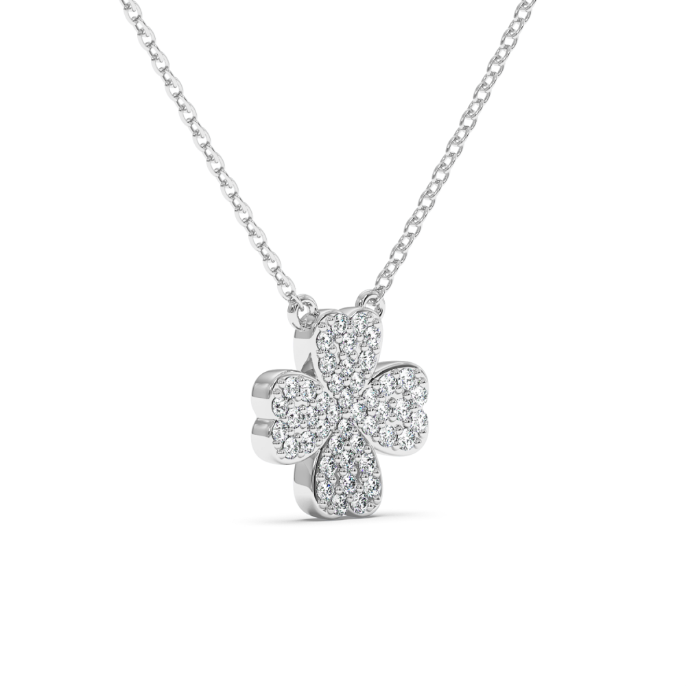 Pandantiv din aur alb de 14 K, cu diamante de 0.26 ct. Greutatea colierului este de 3,92 grame.