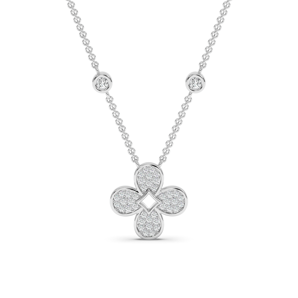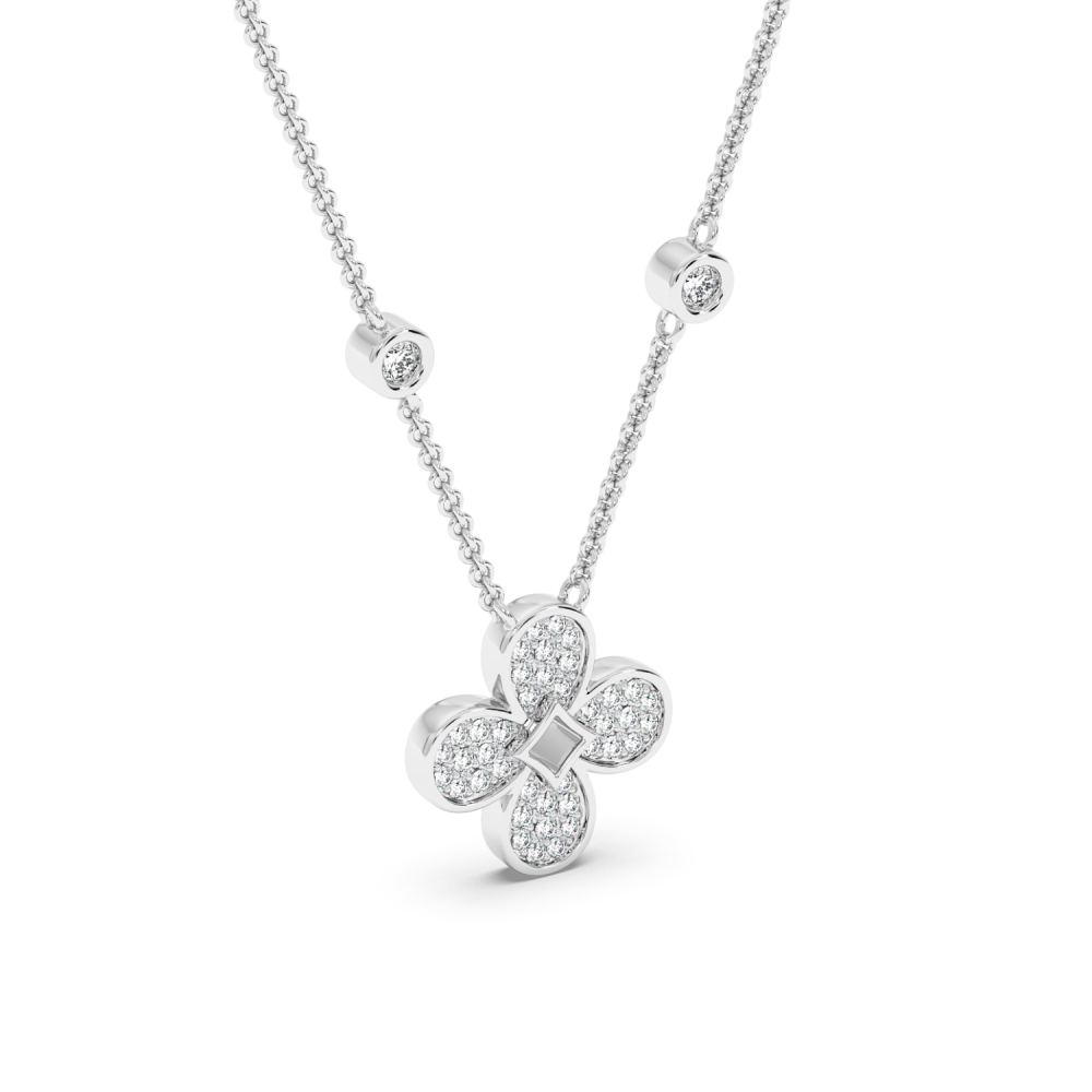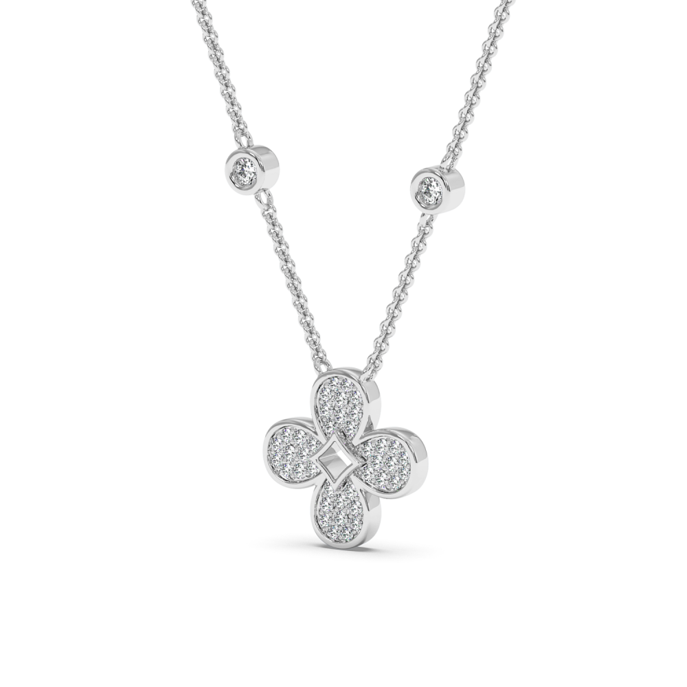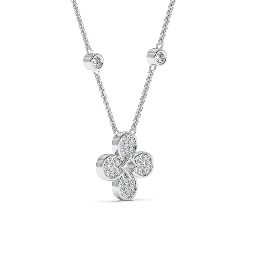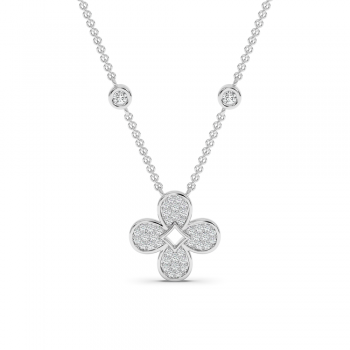 Pandantiv din aur alb de 14 K, cu diamante de 0.26 ct. Greutatea colierului este de 4.7 grame.