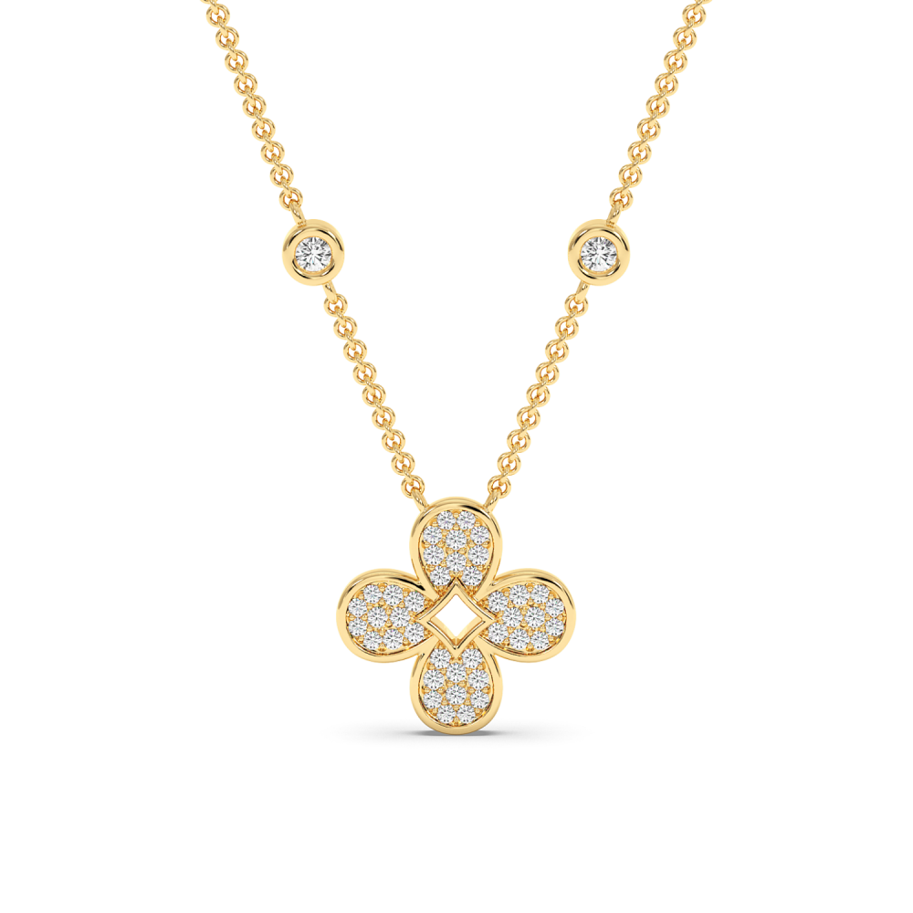 Pandantiv din aur alb de 14 K, cu diamante de 0.26 ct. Greutatea colierului este de 4.7 grame.