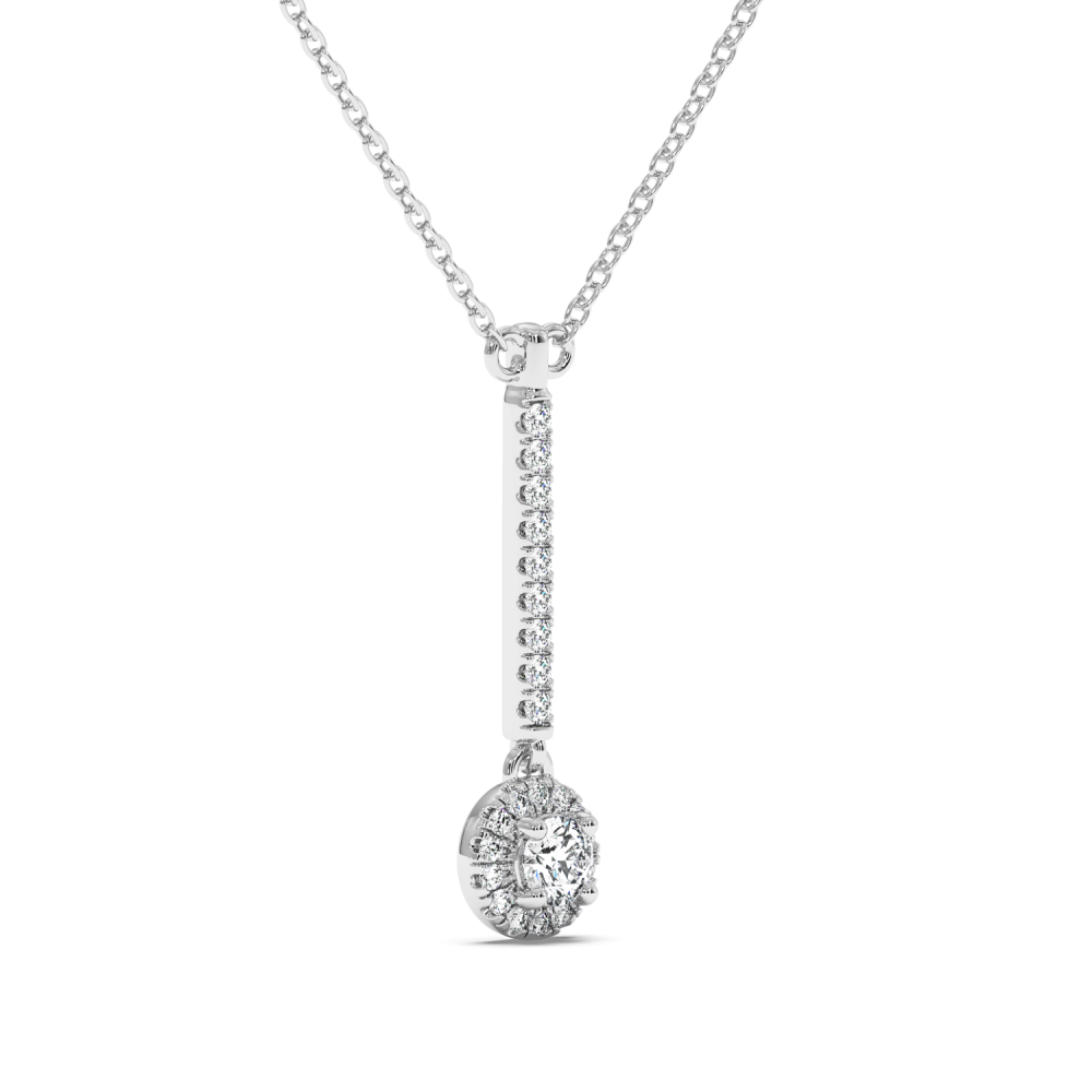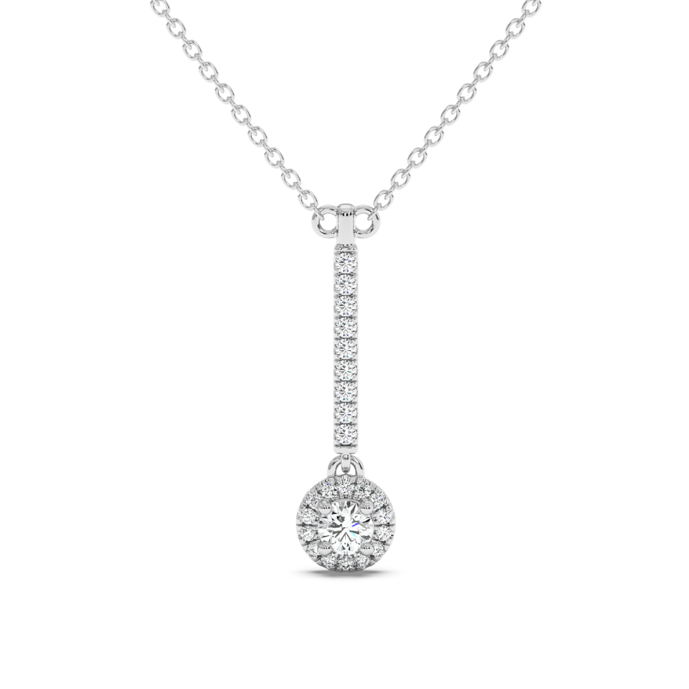 Pandantiv din aur alb de 14k, diamante de 0.27 carate. Greutatea pandantului este de 3.50 grame.