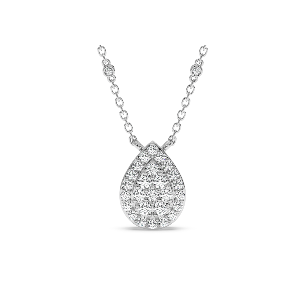 Pandantiv din aur alb de 14K, cu diamante de 0.30 ct. Greutatea colierului este de apx 3.5 grame. Pandantivul se poate realiza din aur alb, galben sau rose.