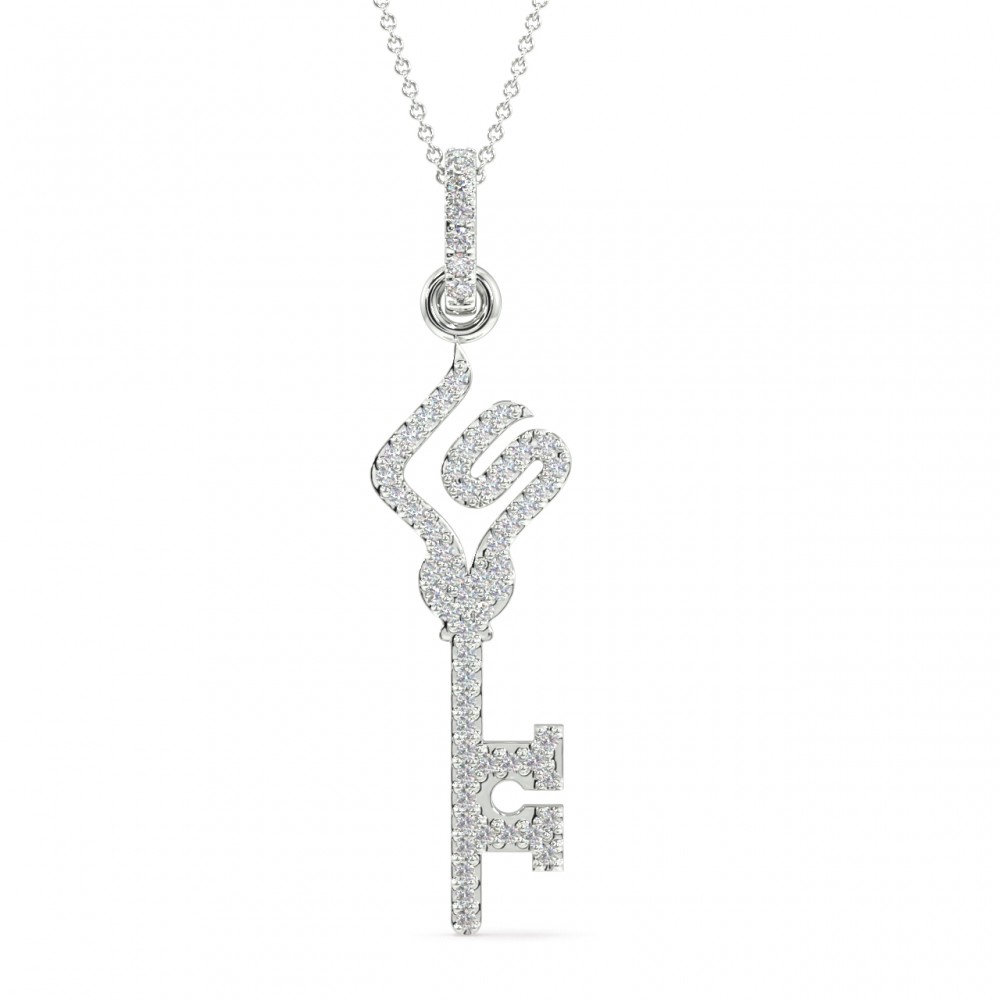 Pandantiv din aur alb de 14k, diamante de 0.30 carate. Greutatea pandantului este de 3.40 grame. Lungimea pandantivului este de 3 cm