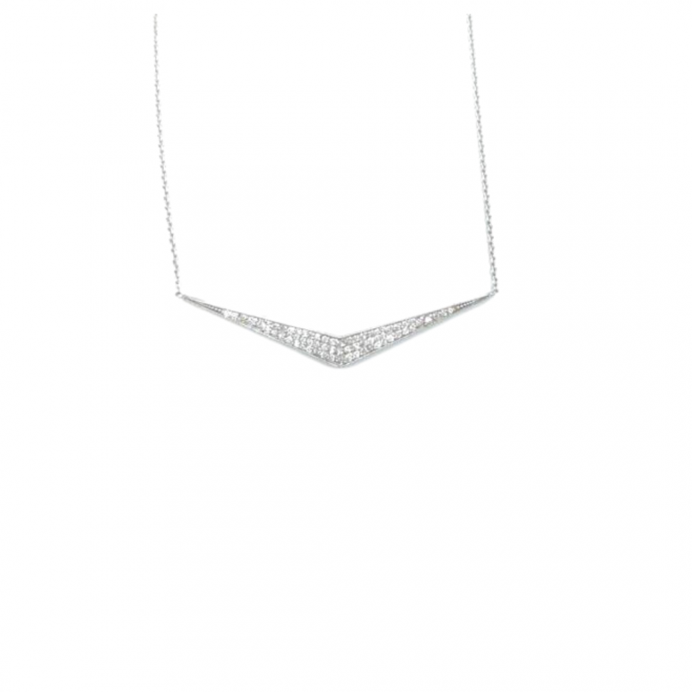Pandantiv din aur alb de 18K, cu diamante de 0.36 ct. Greutatea colierului este de 3.46 grame.